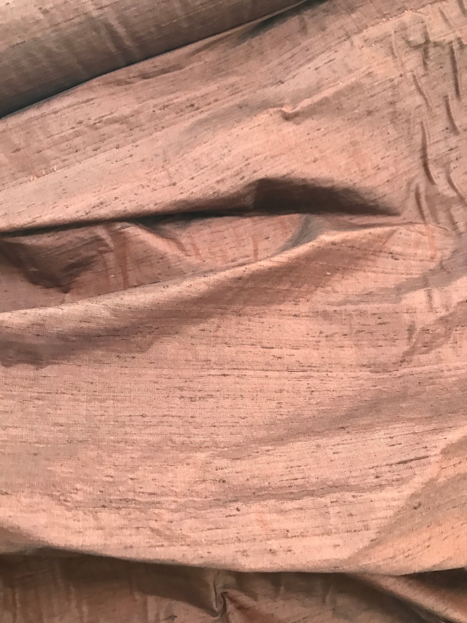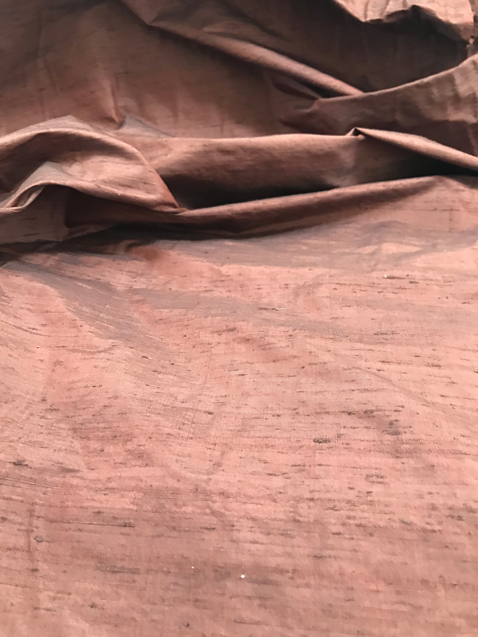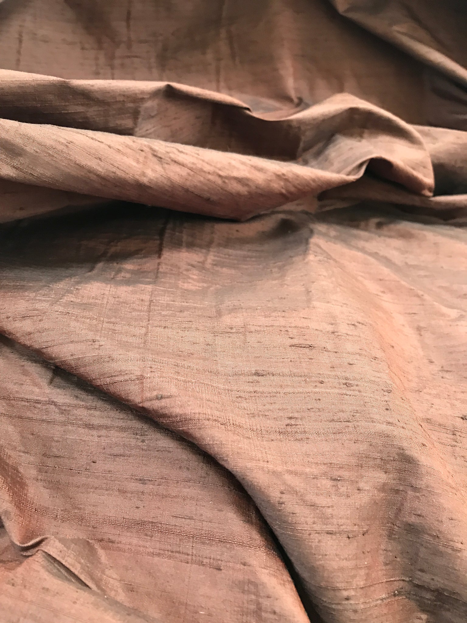 OMG -This gorgeous iridescent silk dupioni is a combination of Copper shade yarns in the warp and Chocolate Brown shade yarns in the weft.