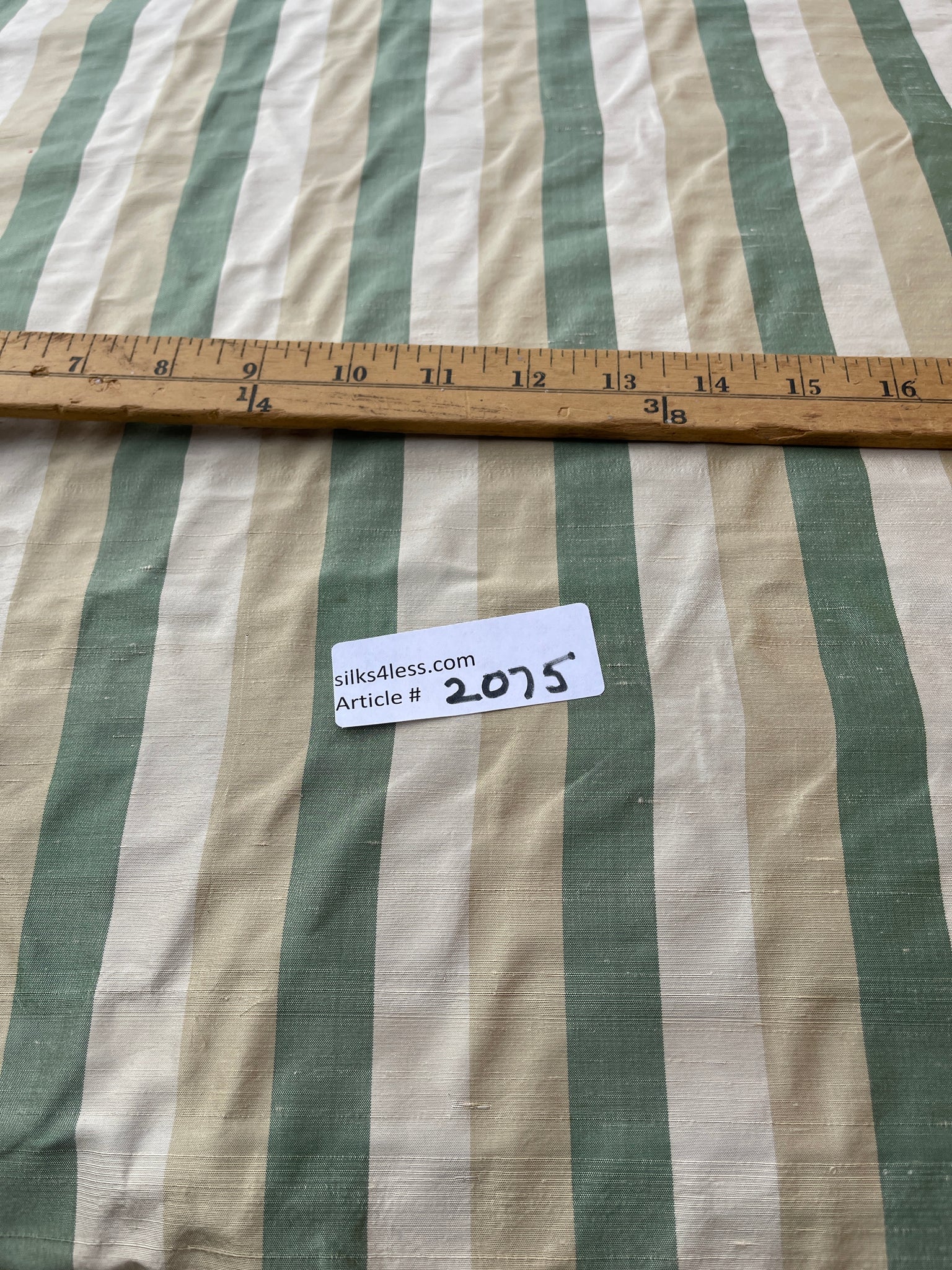 Fabulous Quality Silk Shantung Stripes -IVORY/ OFF-WHITE/ GREENS!!!