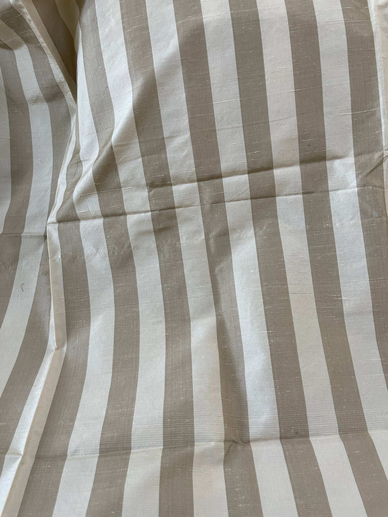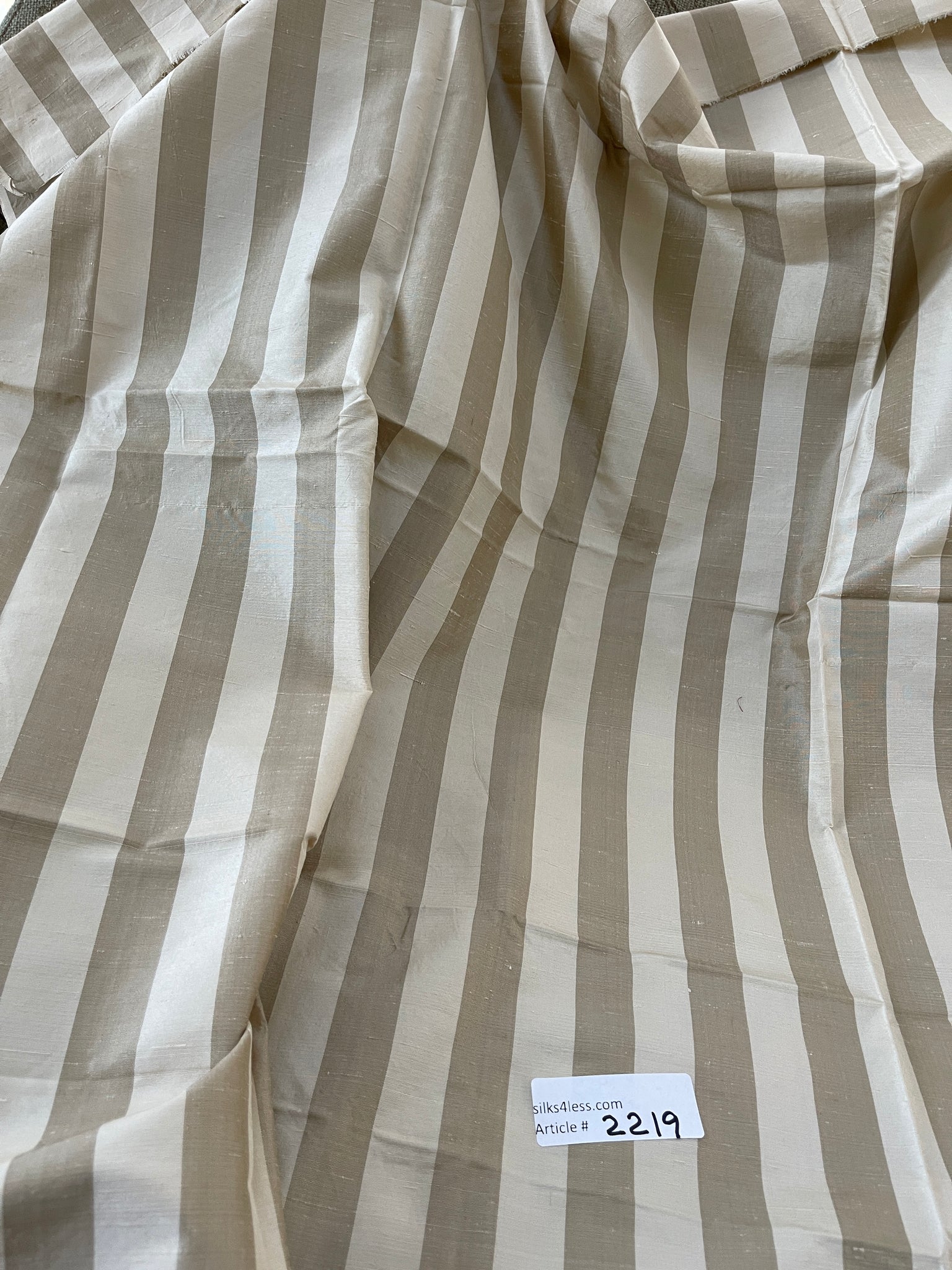 Fabulous quality silk shantung stripes in Camel and Cream, stripes run up the roll, approximate stripe size 1".