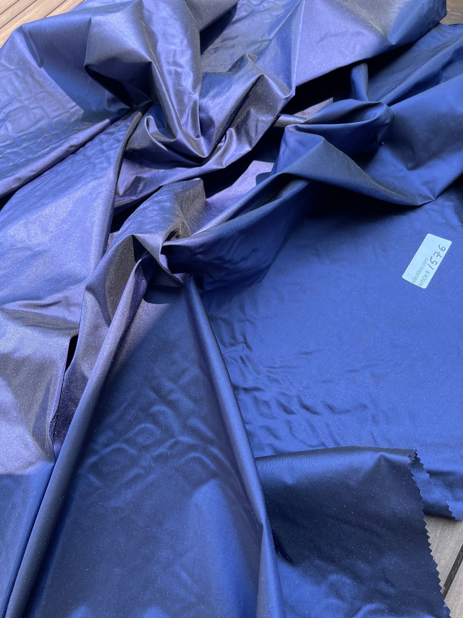Stunning quality iridescent silk taffeta fabric in NAVY shade, Black shade yarns in the warp and Navy shade yarns in the weft, crisp & great body.