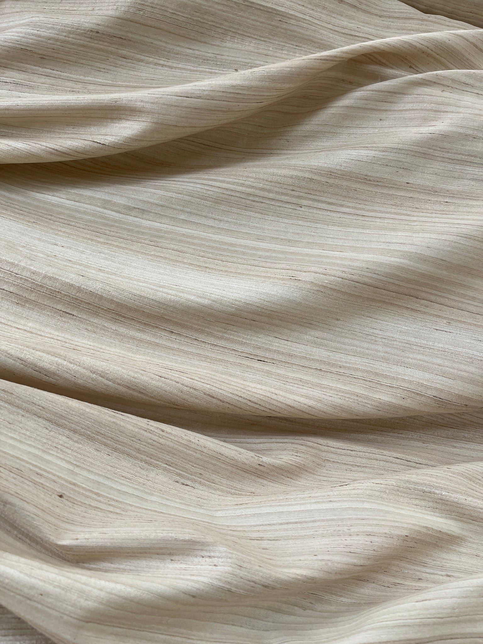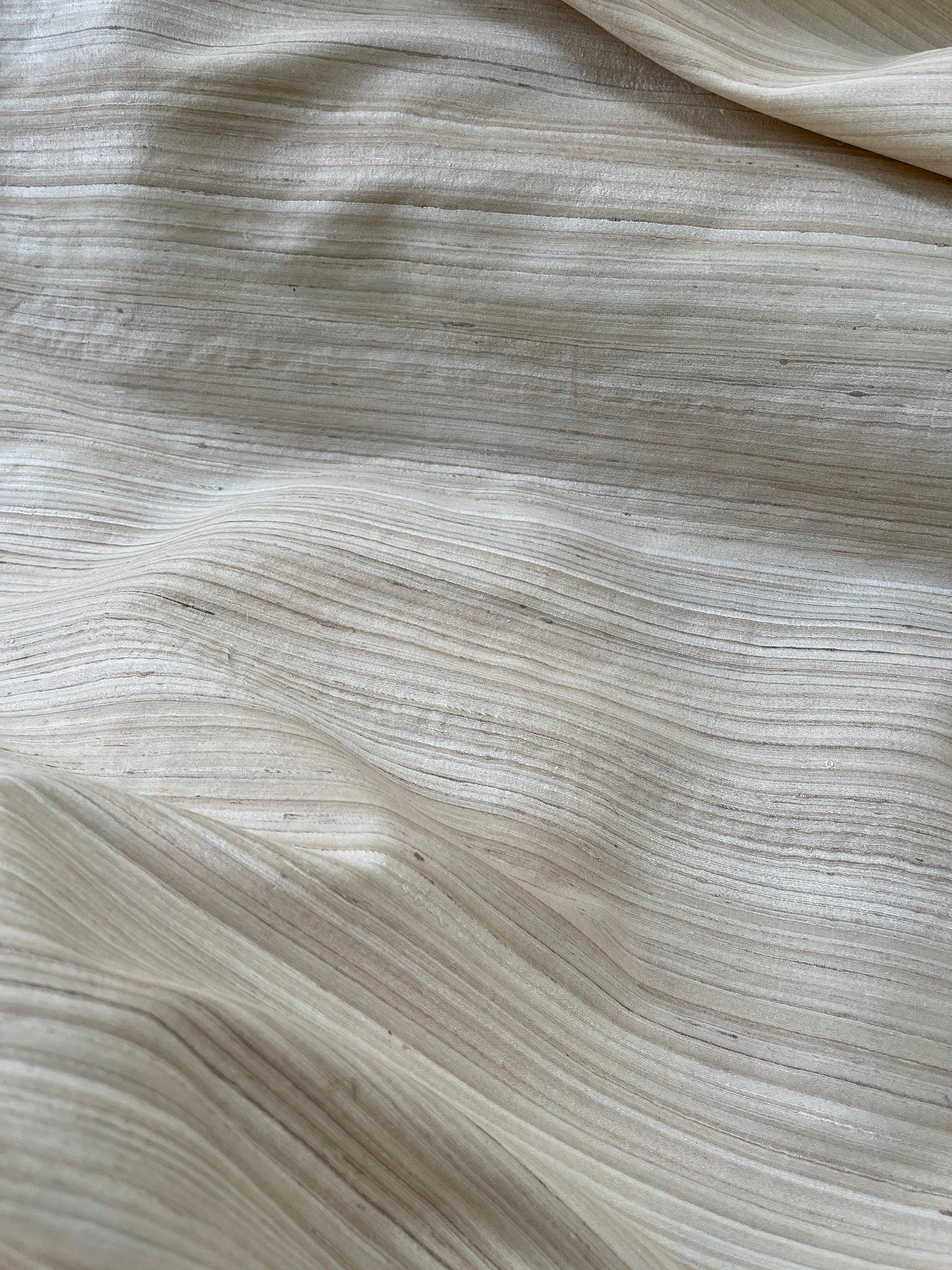 Tussah Silk is valued for its natural and rich texture. Hand woven Raw Silk fabric with Natural color, medium to heavy weight. The warp and weft yarns of this plain weave fabric are very different, giving tussah the look of woven grasses. This Silk is considered an excellent choice for suits, jackets and for home furnishing.