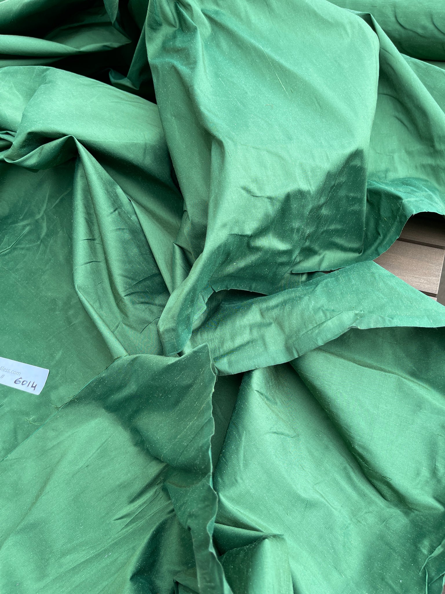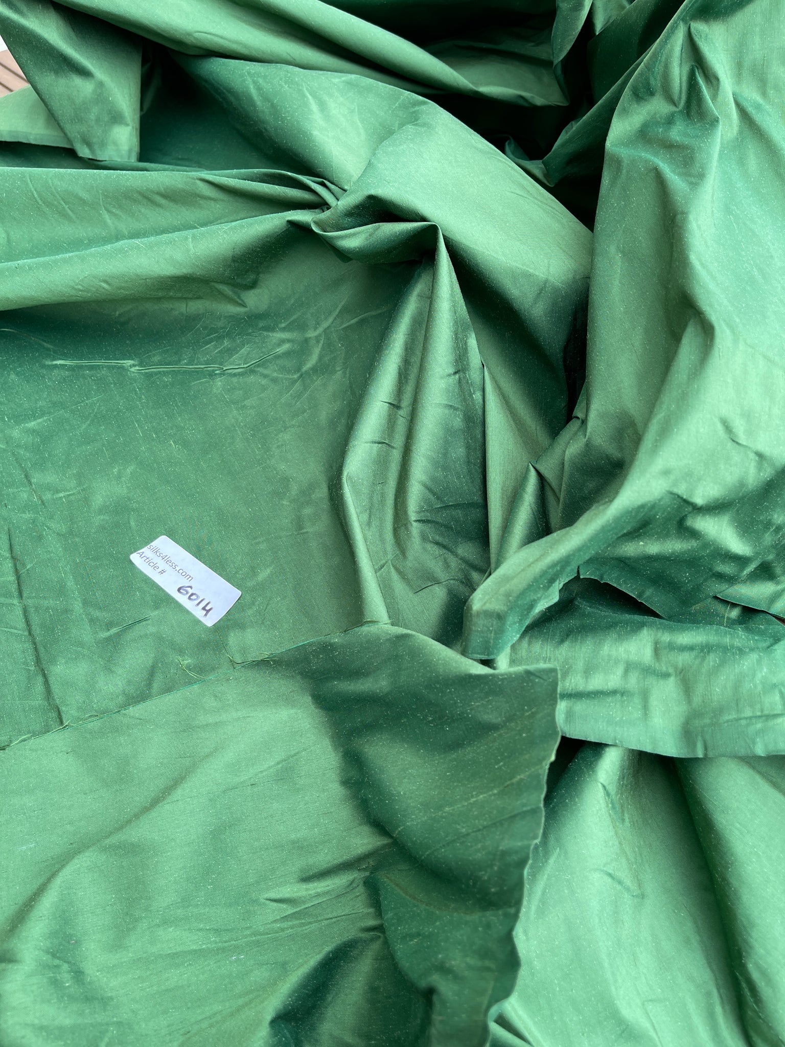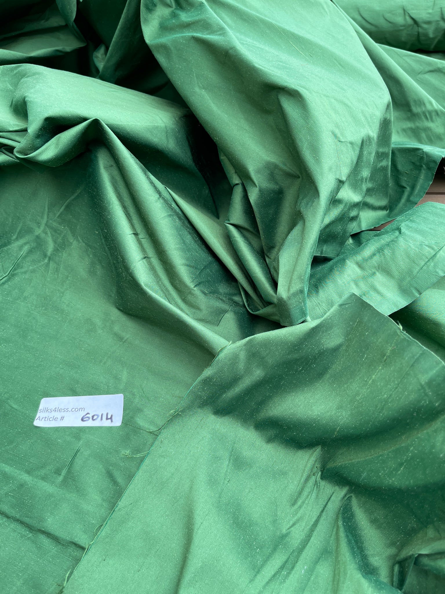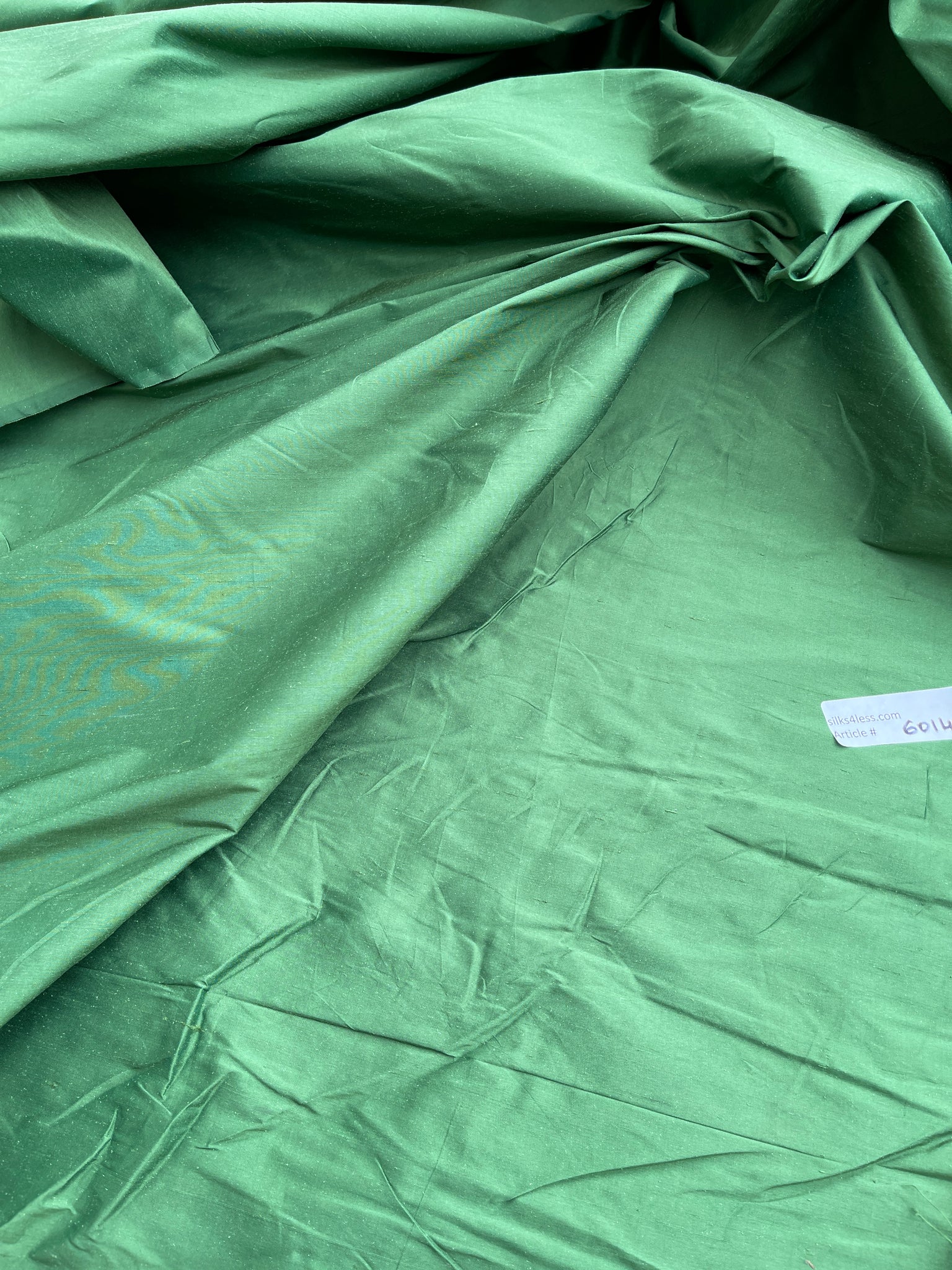 Great feel and body to this silk shantung, medium weight, high quality fabrics, shade # Moss Green, combination of Dark Green color yarns in the warp and Green color yarns in the weft.