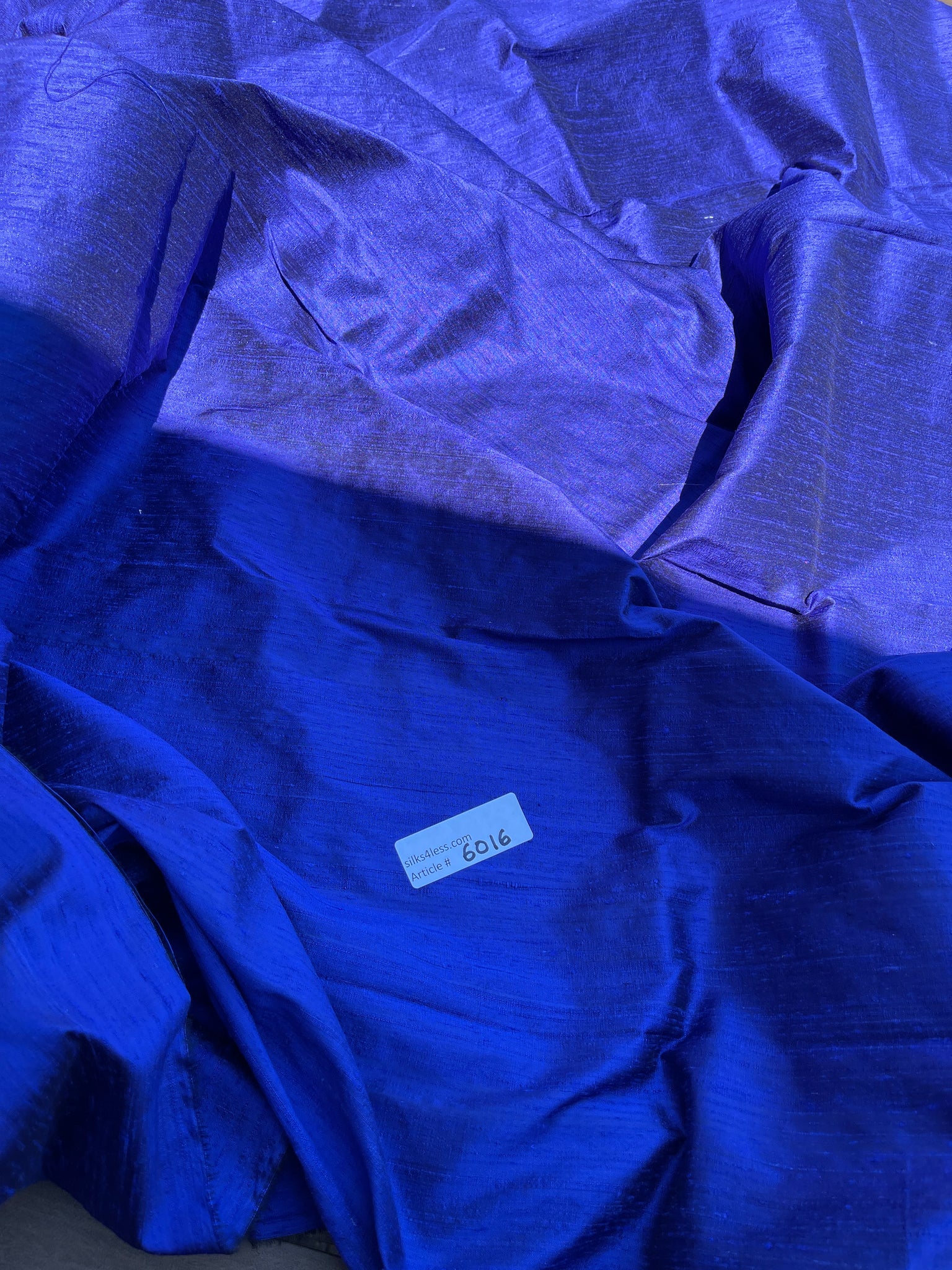 Great feel and body to this 100% iridescent silk shantung, medium weight, high quality fabrics, shade # Sapphire, combination of Black color yarns in the warp and Sapphire color yarns in the weft.