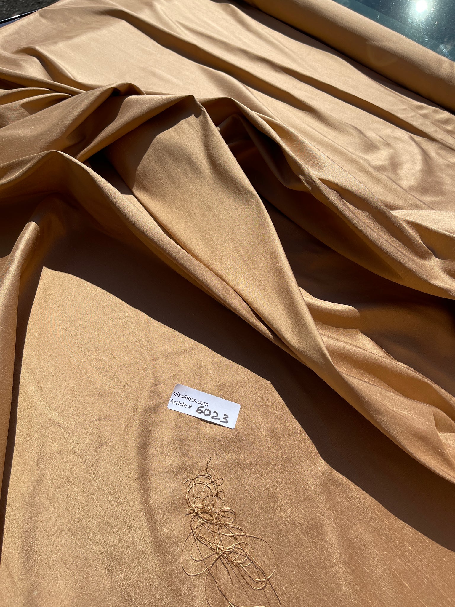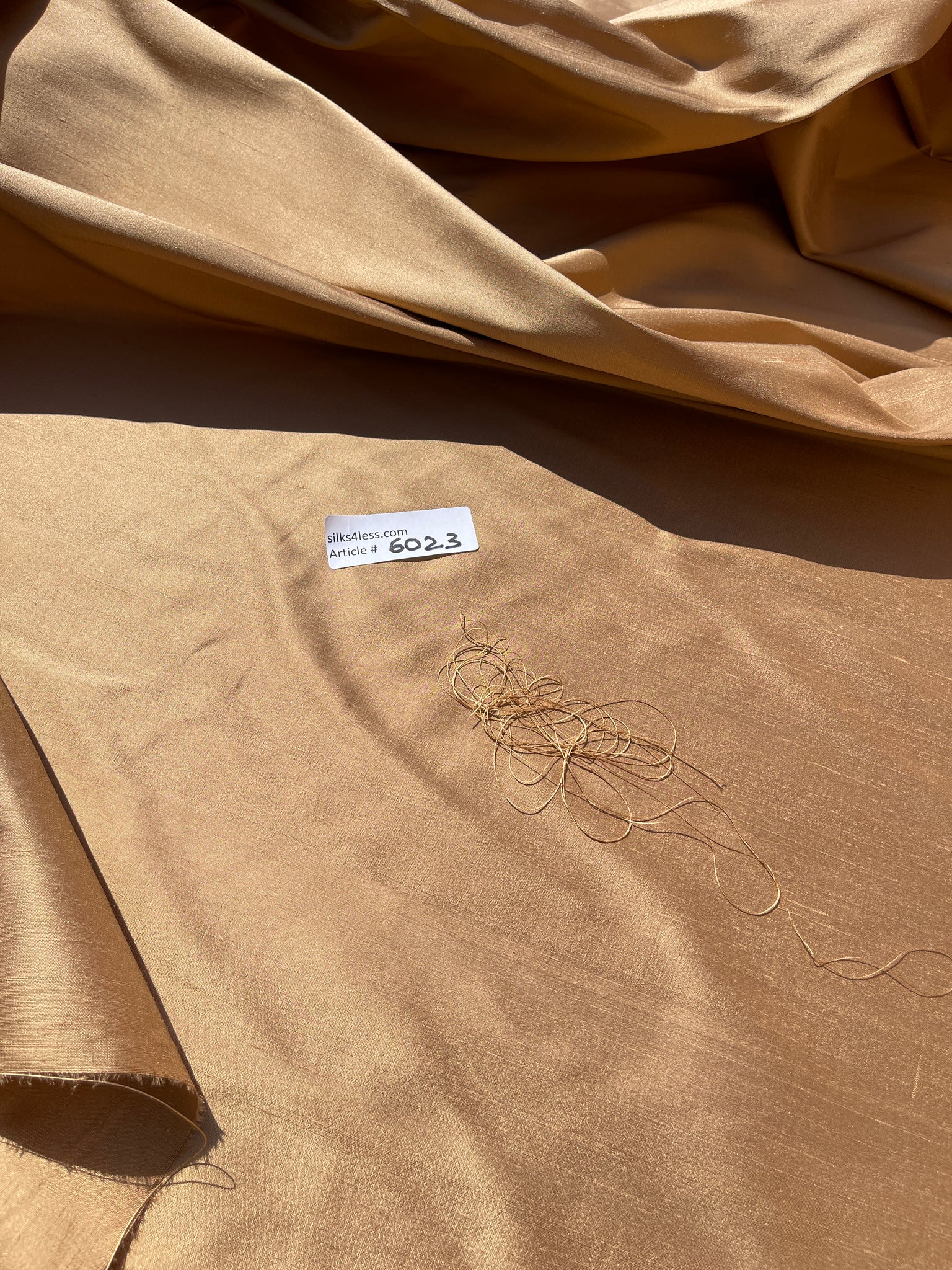 Great feel and body silk shantung, medium weight, high quality fabrics, shade # Sandalwood, combination of Wheat color yarns in the warp and Gold color yarns in the weft.