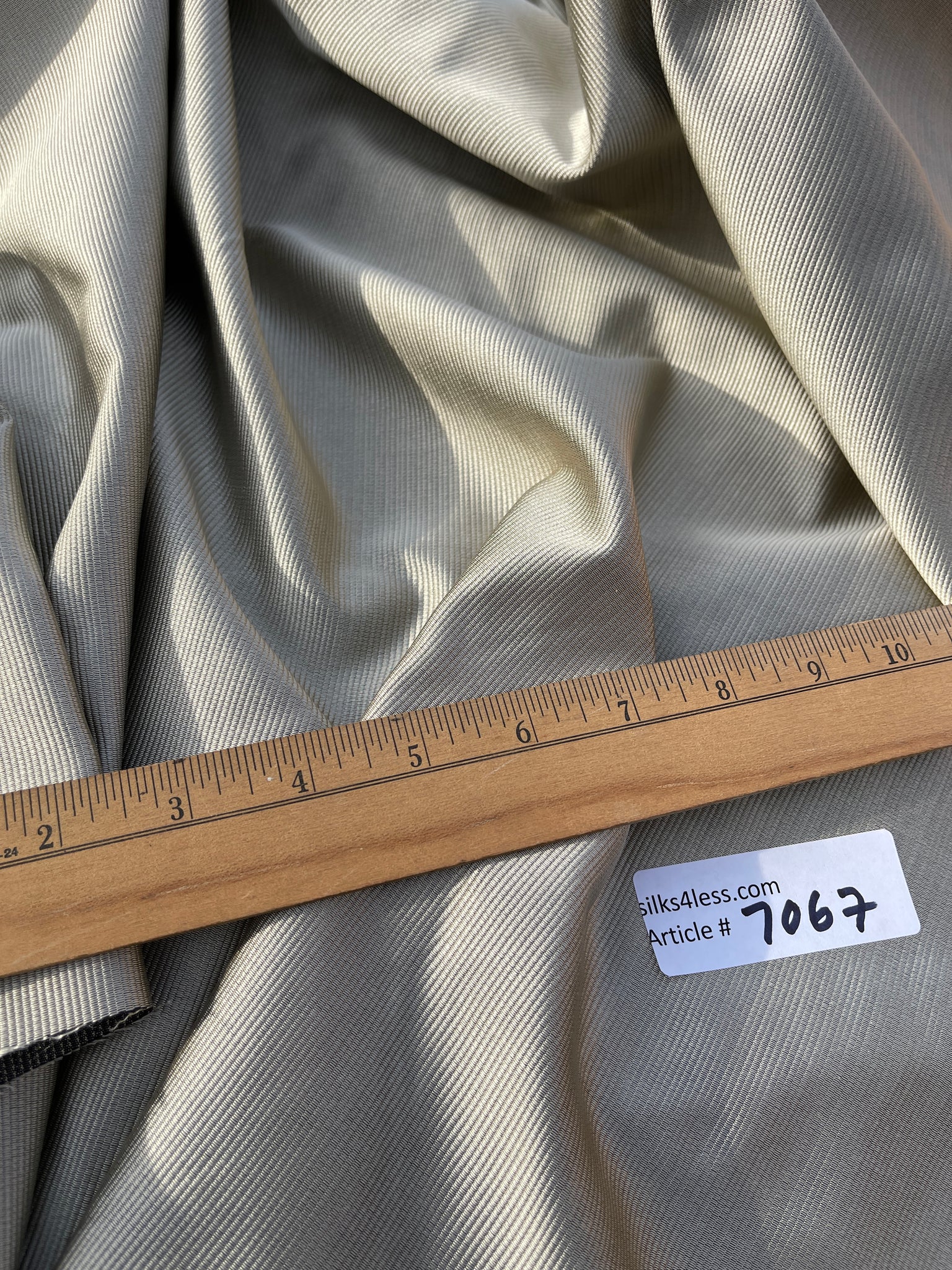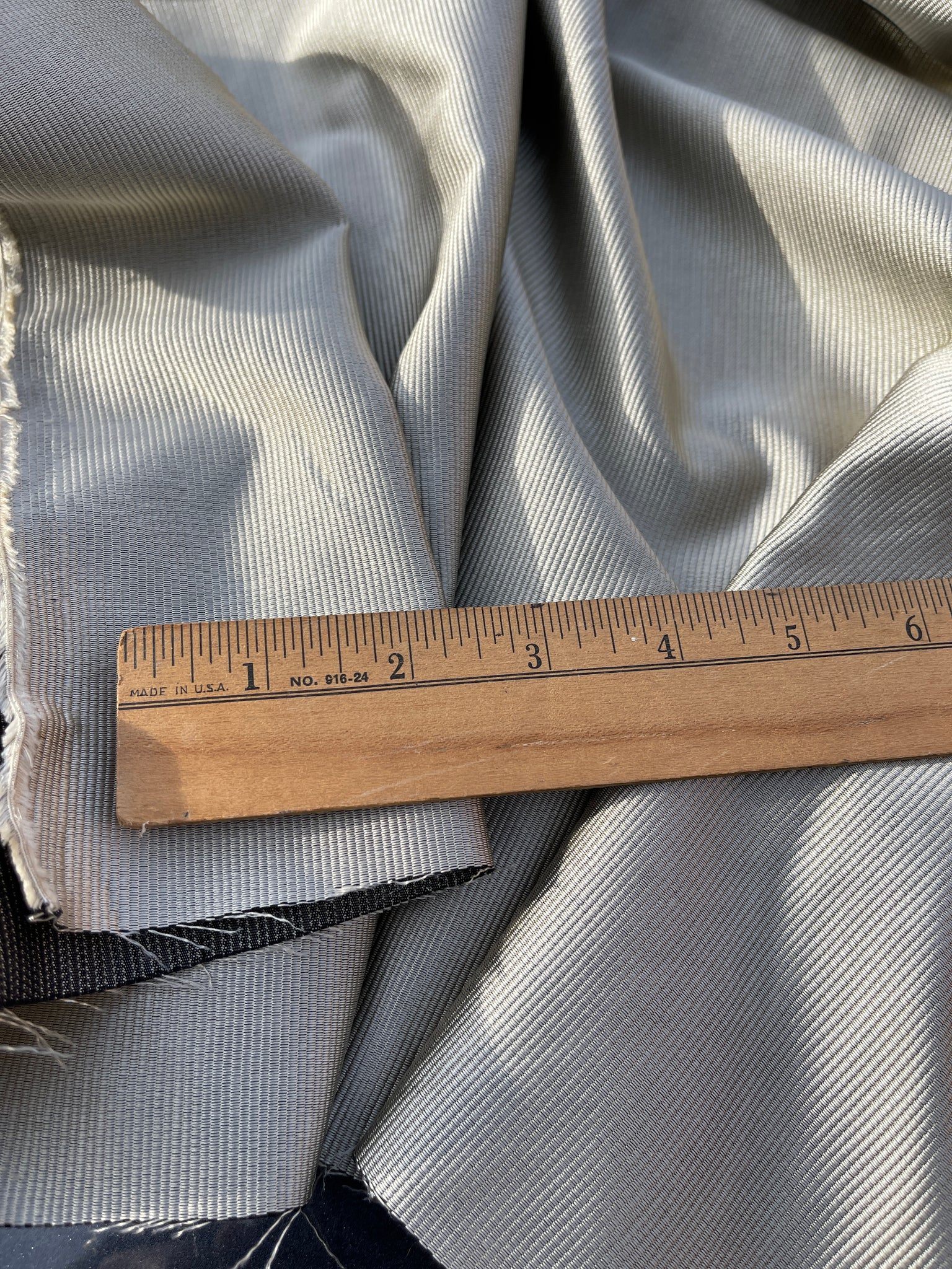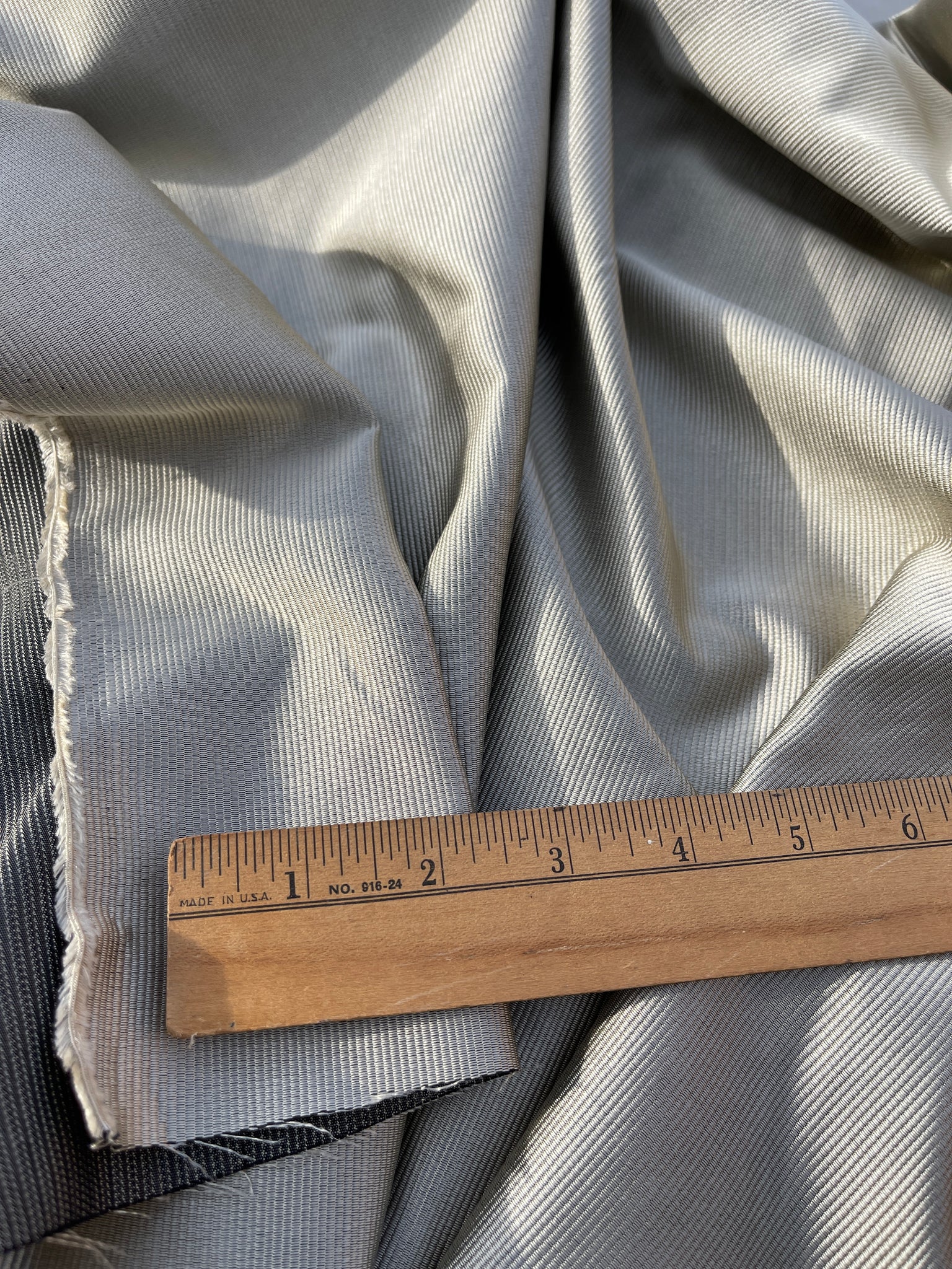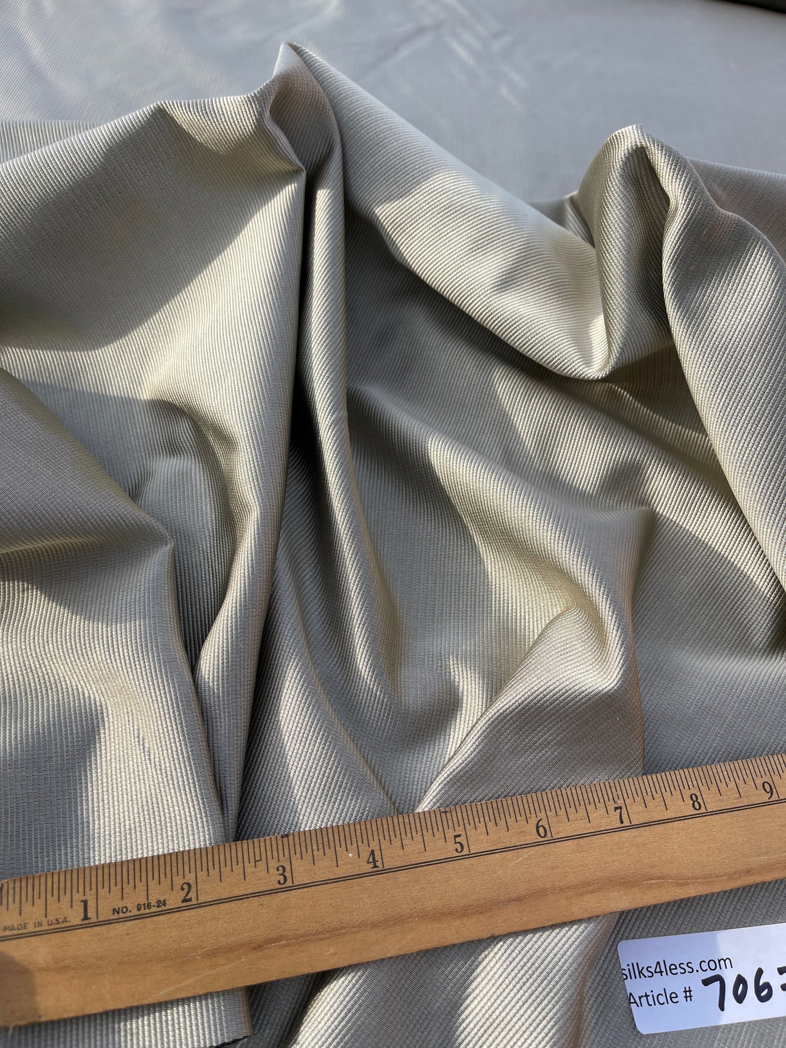 Exquisite quality, medium/heavy weight, Rib Silk Satin, stripes going up the roll, shade # Combination of Black in the warp and Cream/Sage in the weft, we will call iridescent Golden Sage.