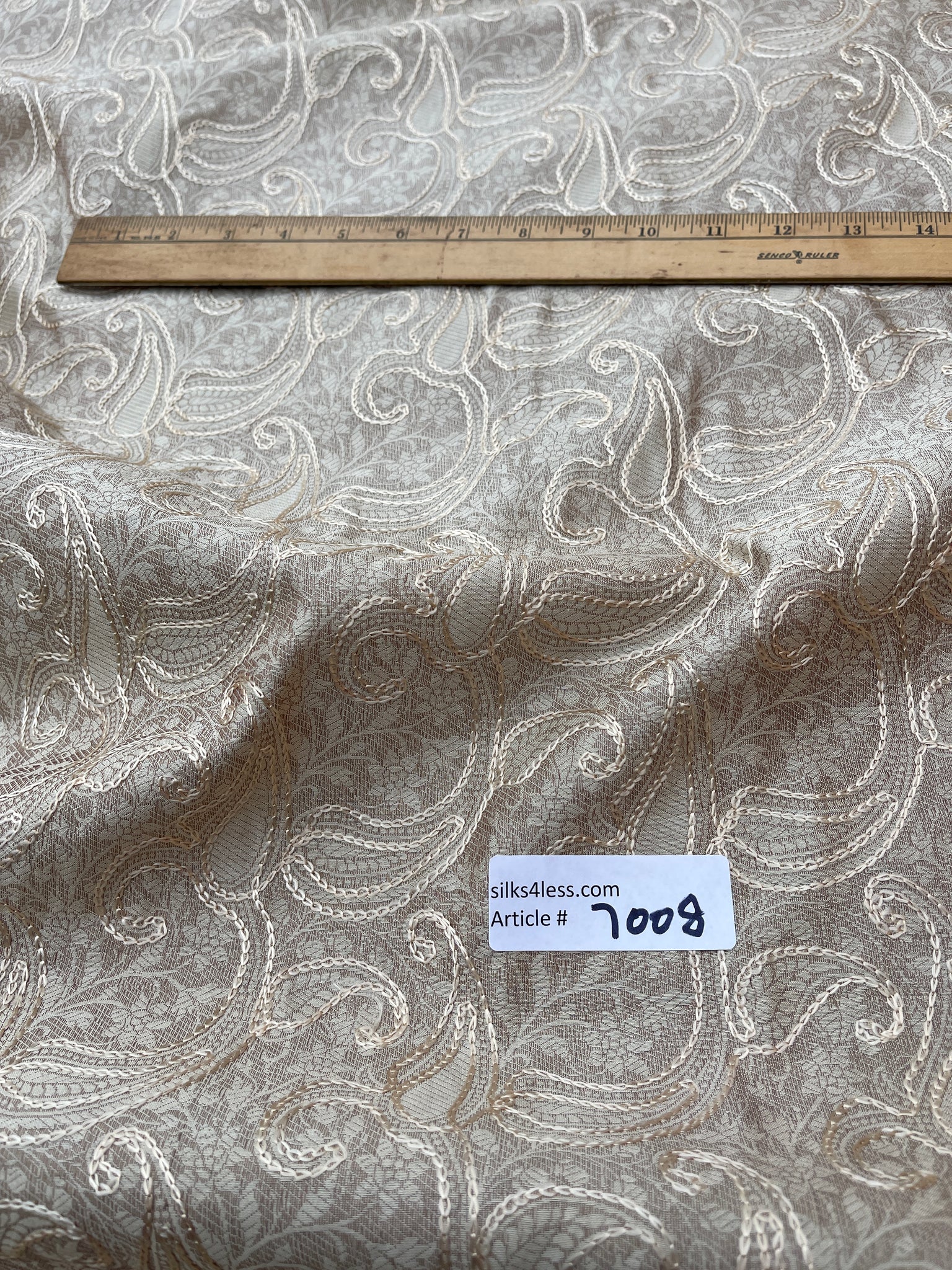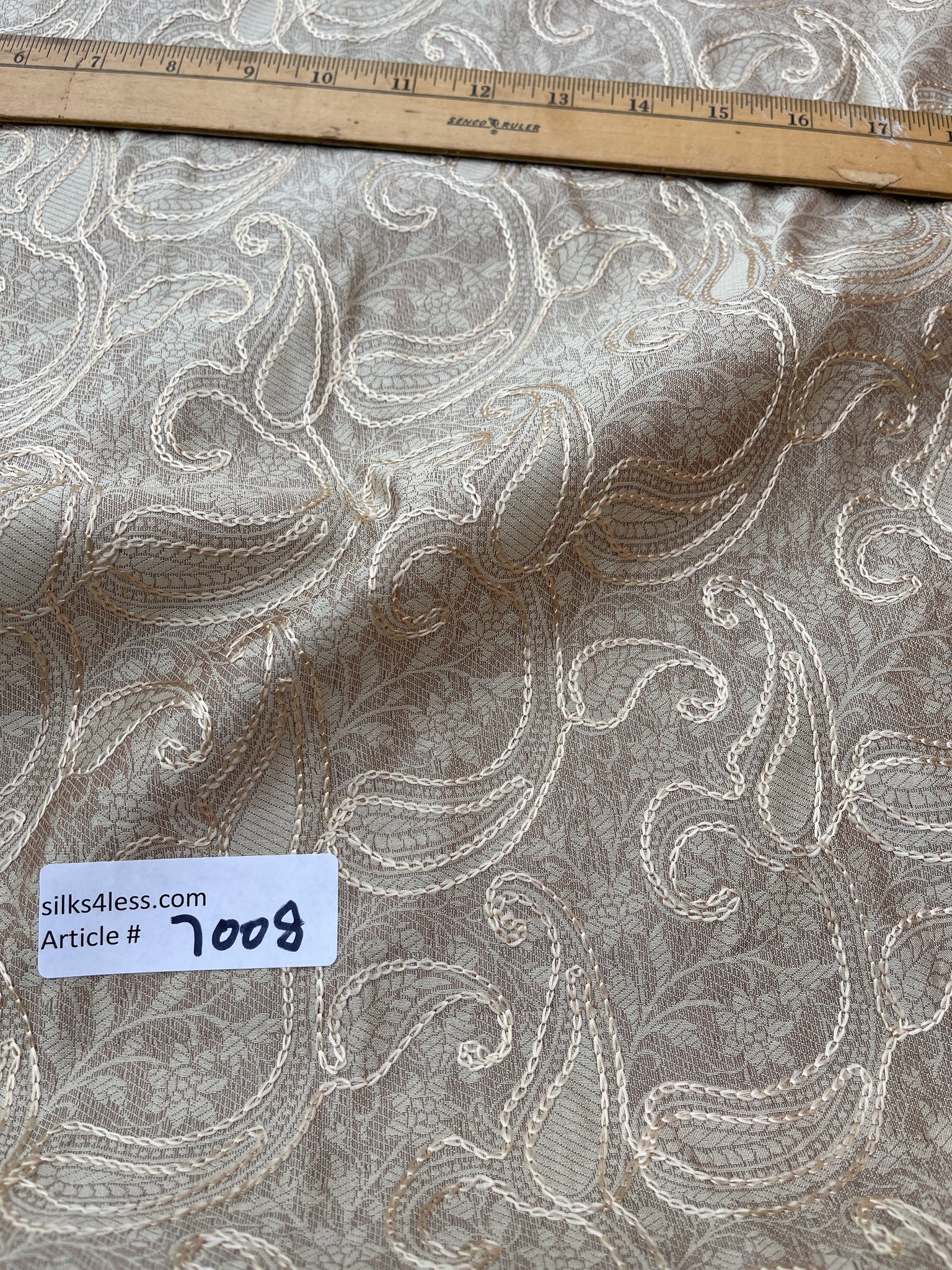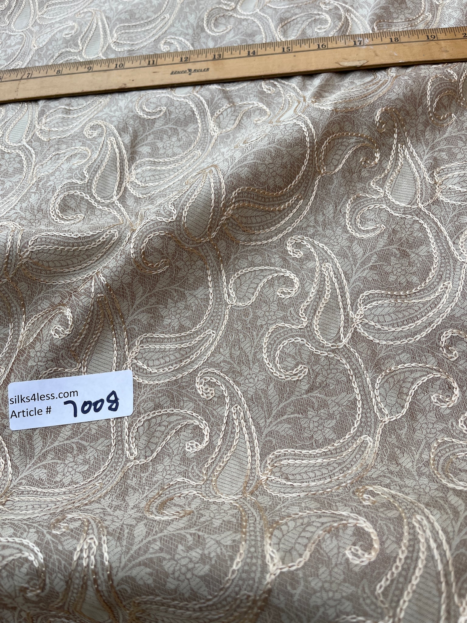 Designer Quality Silk Shantung Jacquard & Paisley Embroidery - WHEAT!!!
