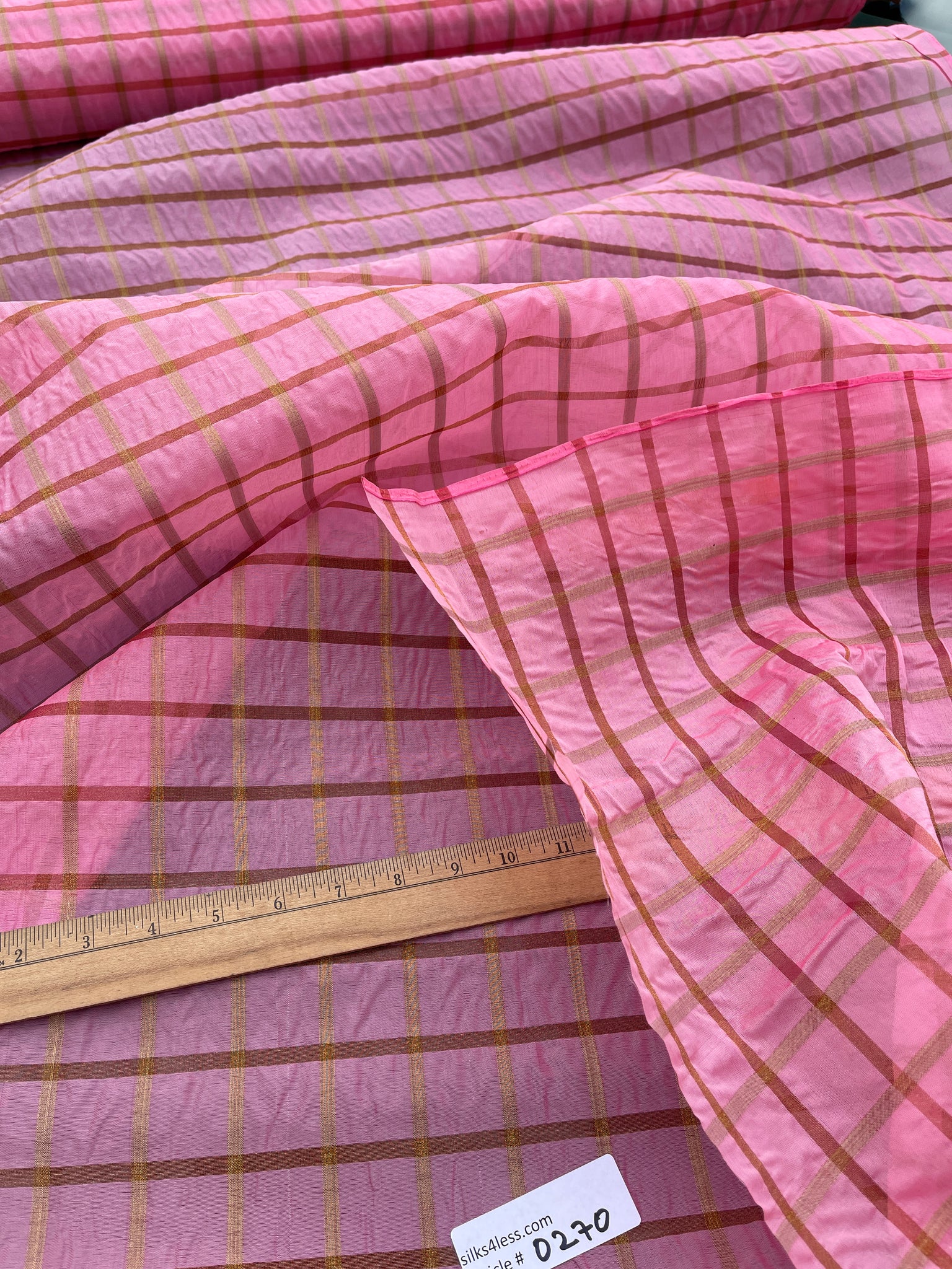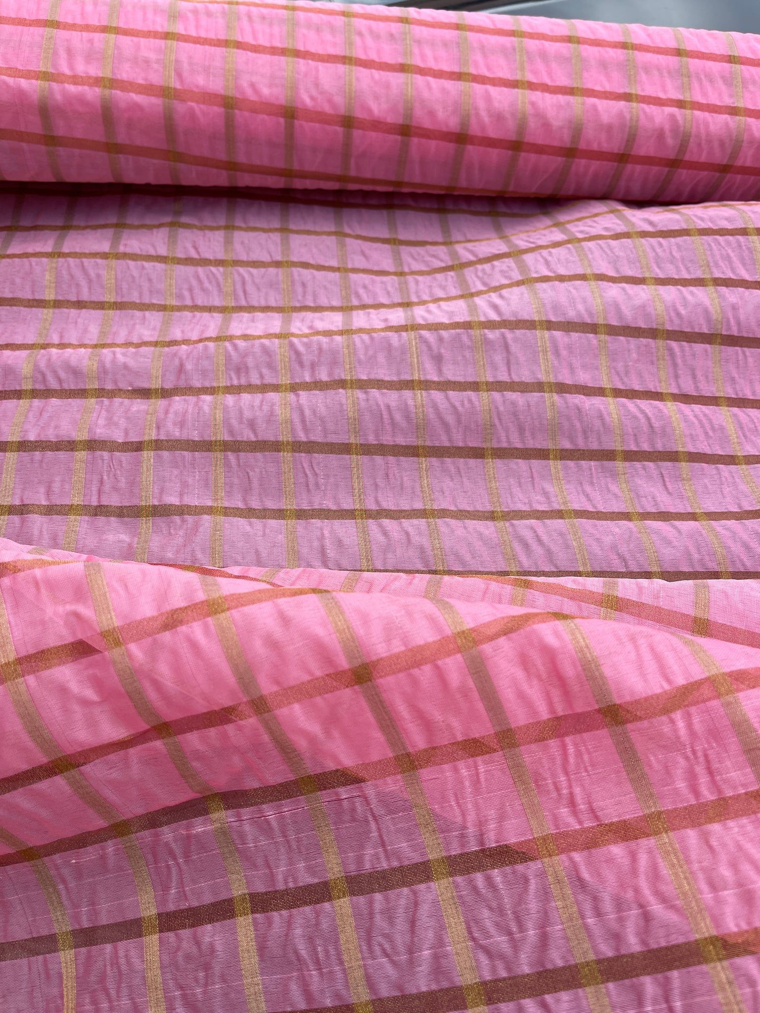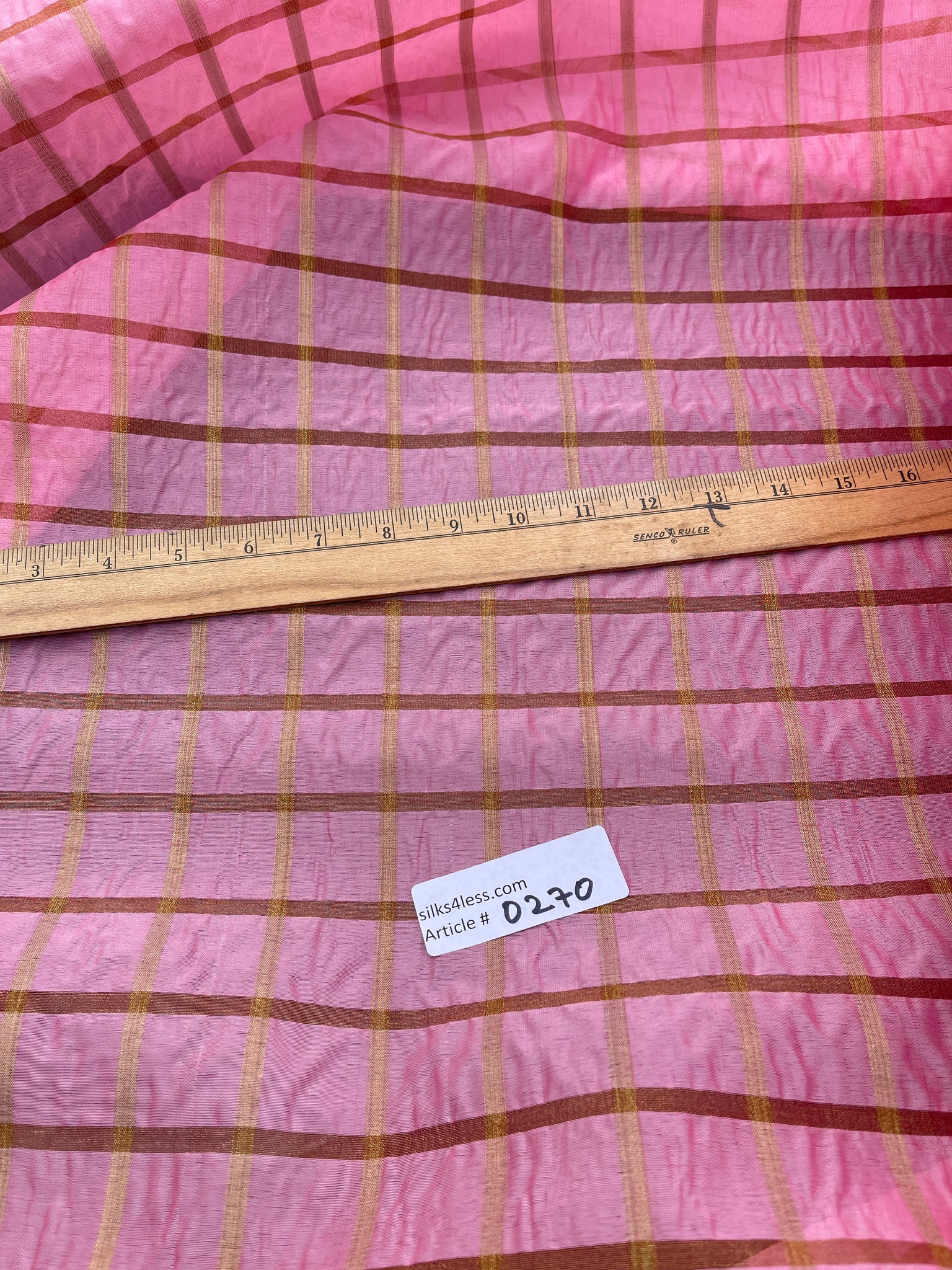 100% Silk Organza in Pink/Gold, gorgeous pattern.
