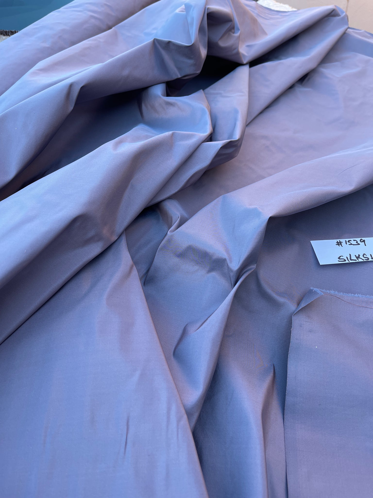 Exquisite quality iridescent silk taffeta is a combination of gorgeous Lilac color yarns in the warp and Raisin color yarns in the weft, crisp & great body