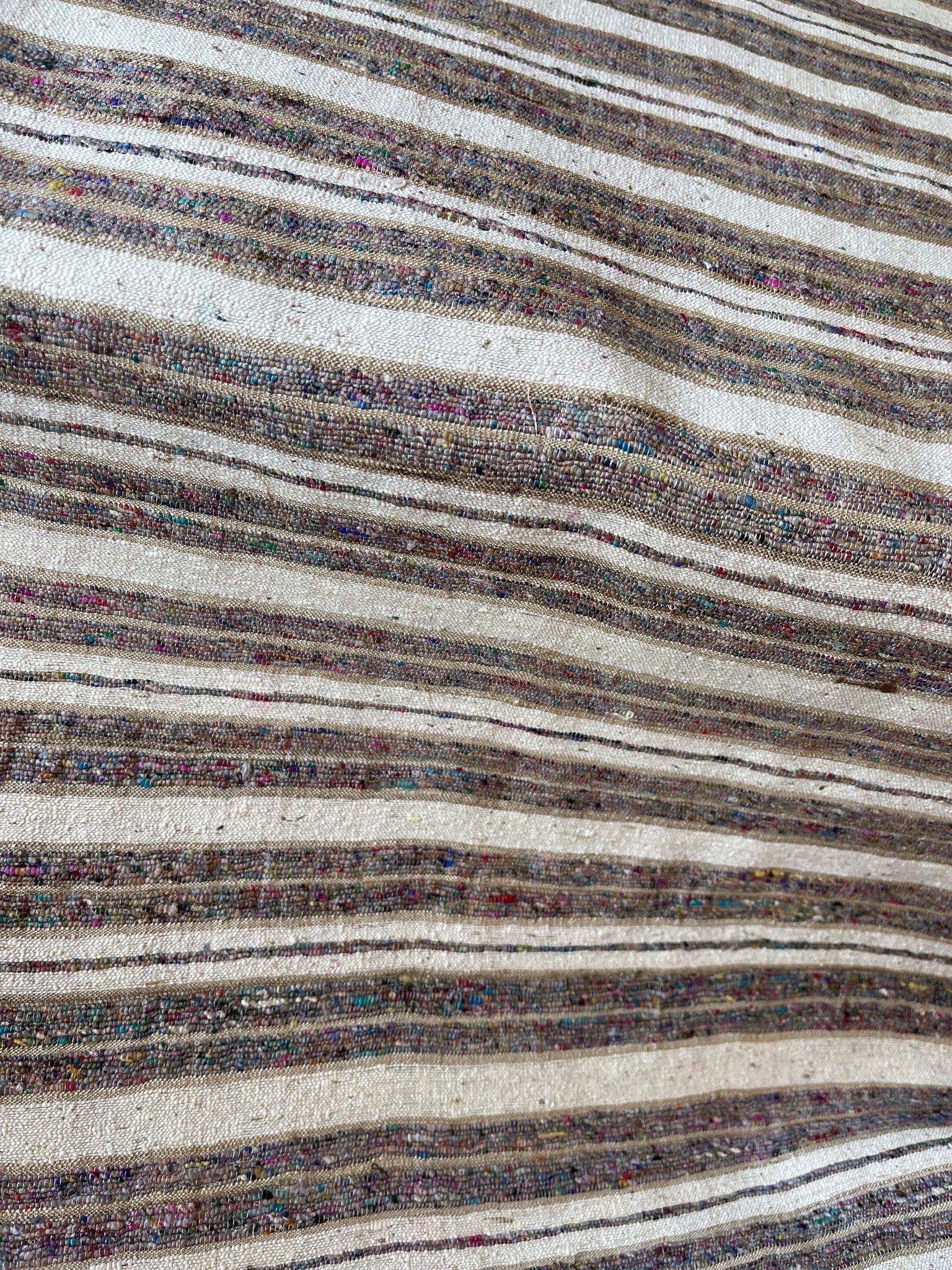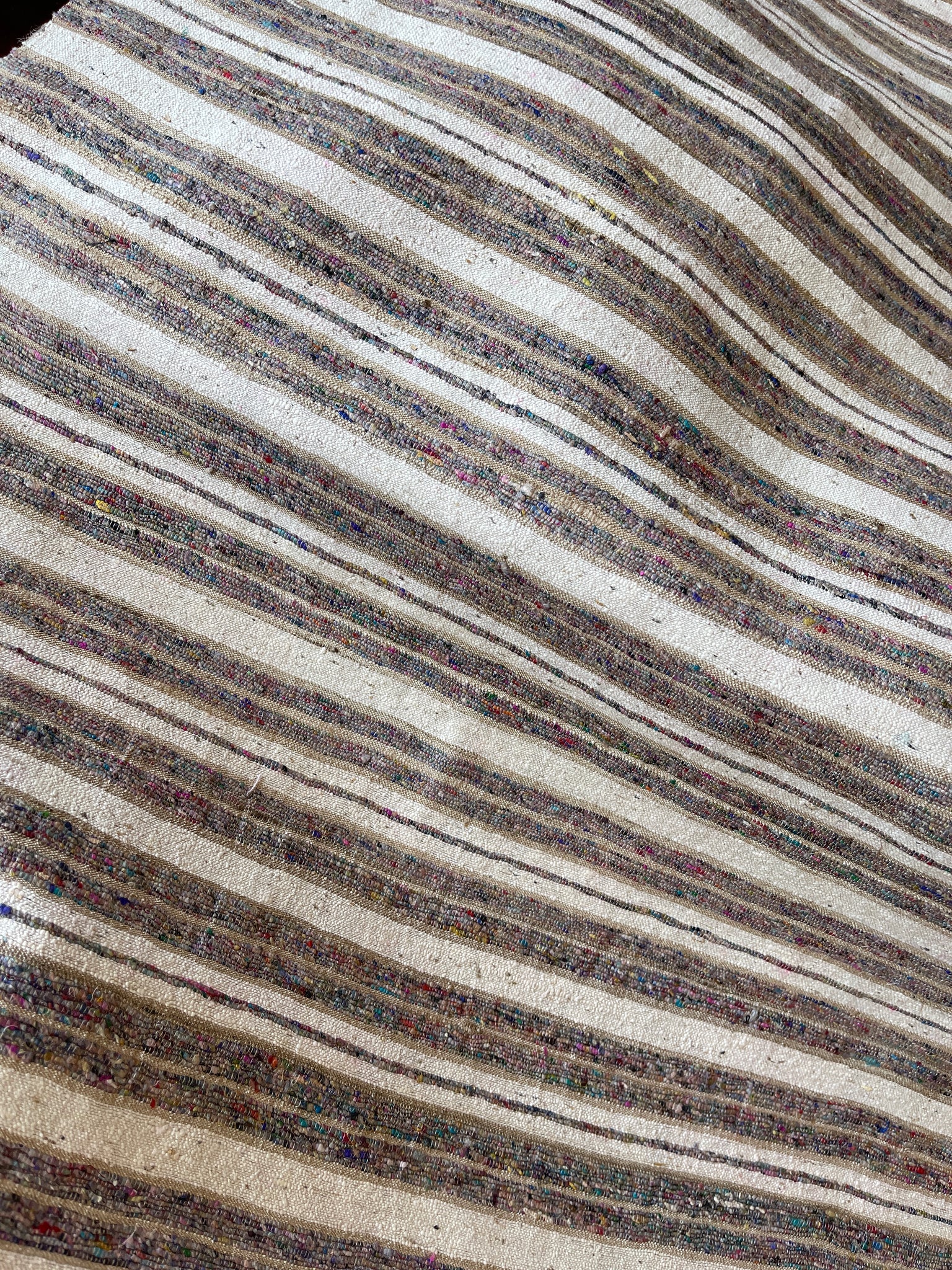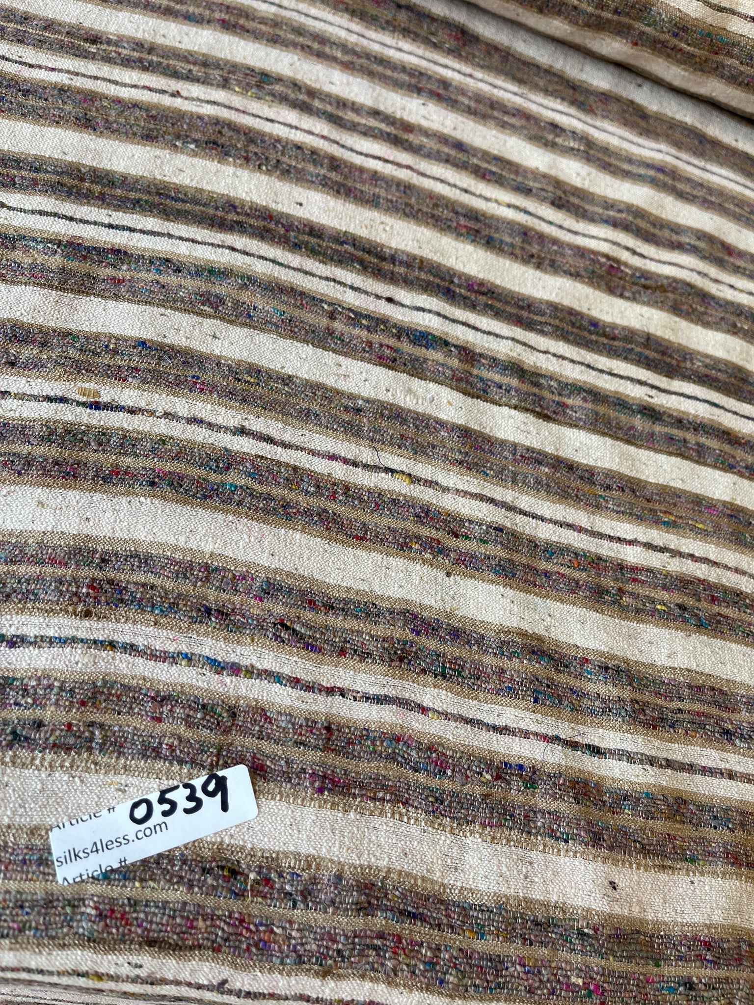 Great quality 100% raw silk fabric, Natural shade, raised stripes in multi colors running selvedge to selvedge.