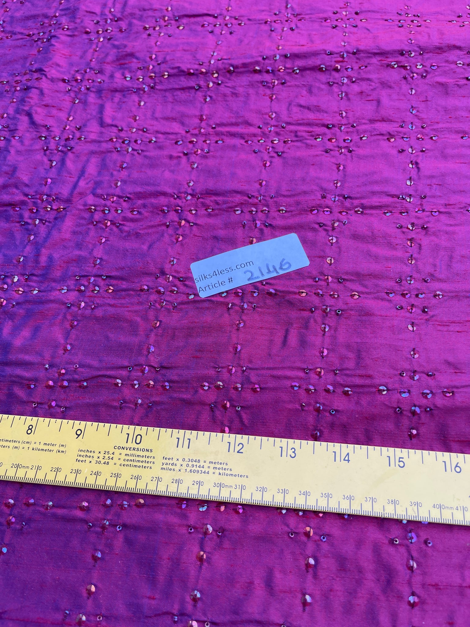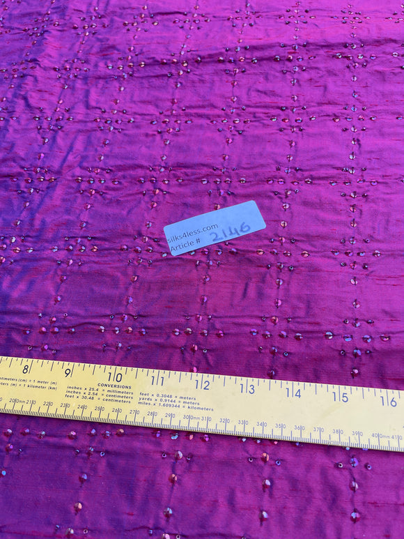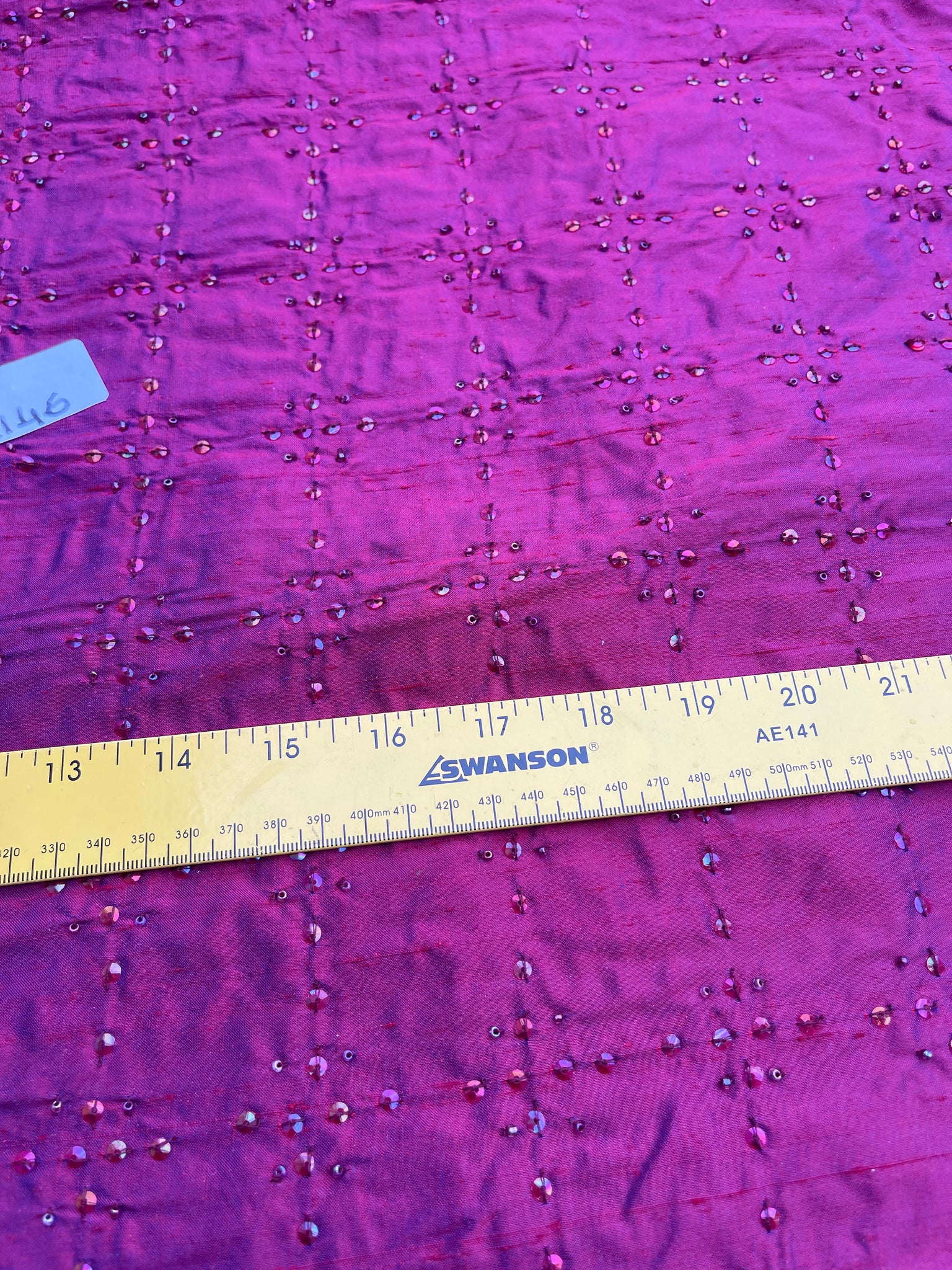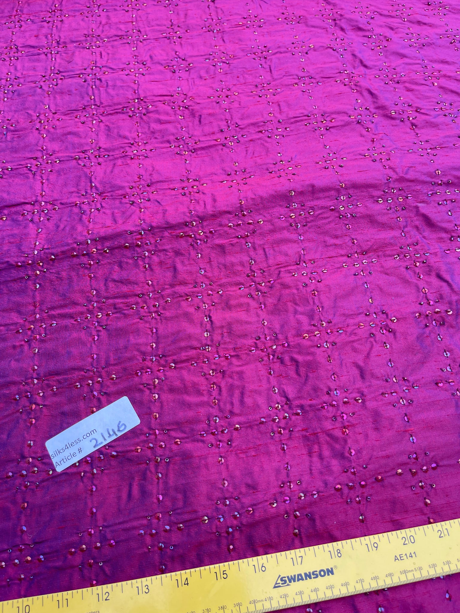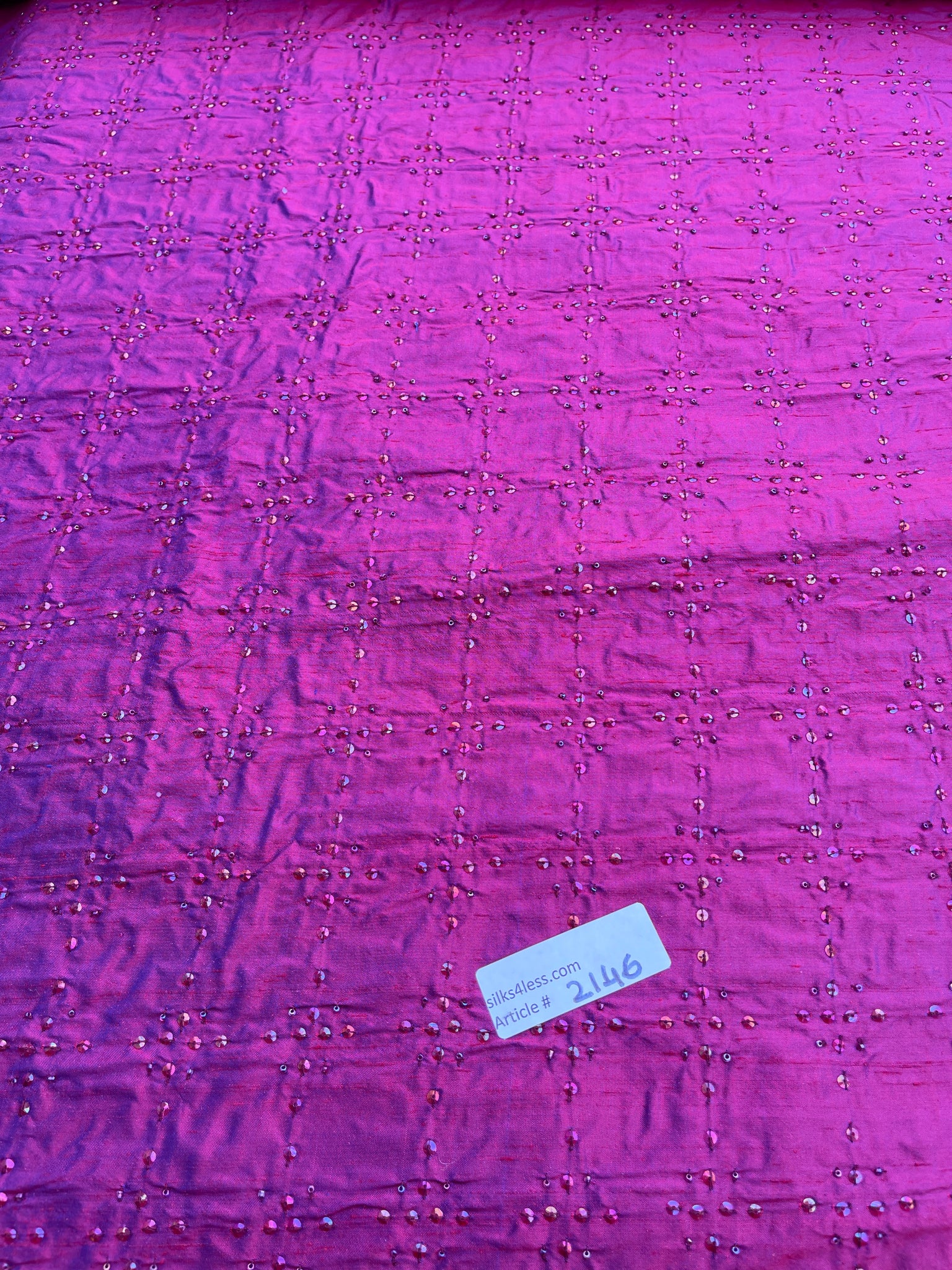 Fabulous designer quality silk shantung embroidery. Base Magenta, geometric pattern hand embroidered with tone on tone beads and sequence, simple embroidery for a subtle grandeur.