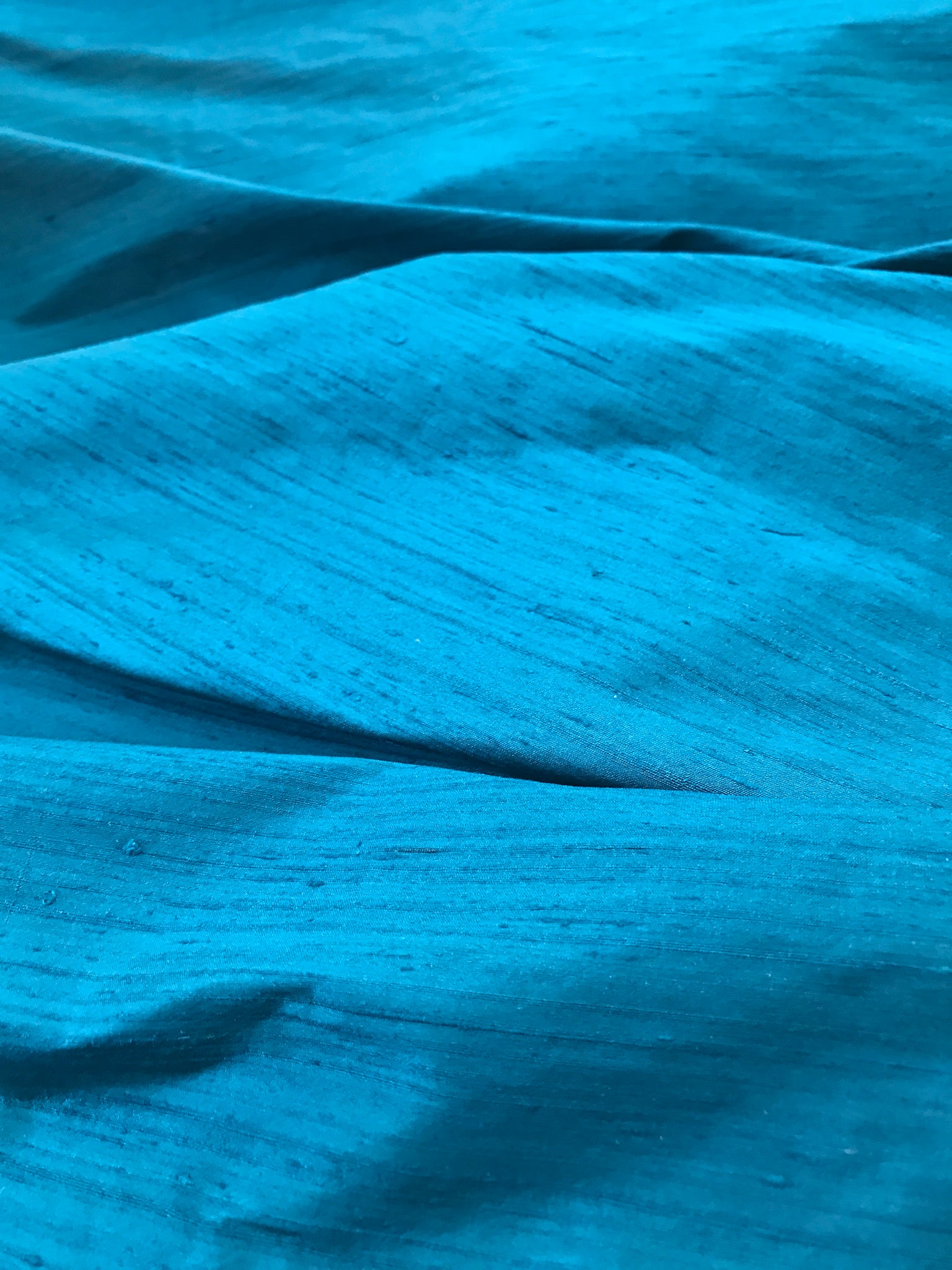 AS PRETTY AS THE PICTURE: This Gorgeous silk dupioni is a combination of Pine Green shade yarns in warp and Teal shade yarns in the weft, great sheen to the fabric, Actual fabric is more towards Teal and Green than Turquoise.