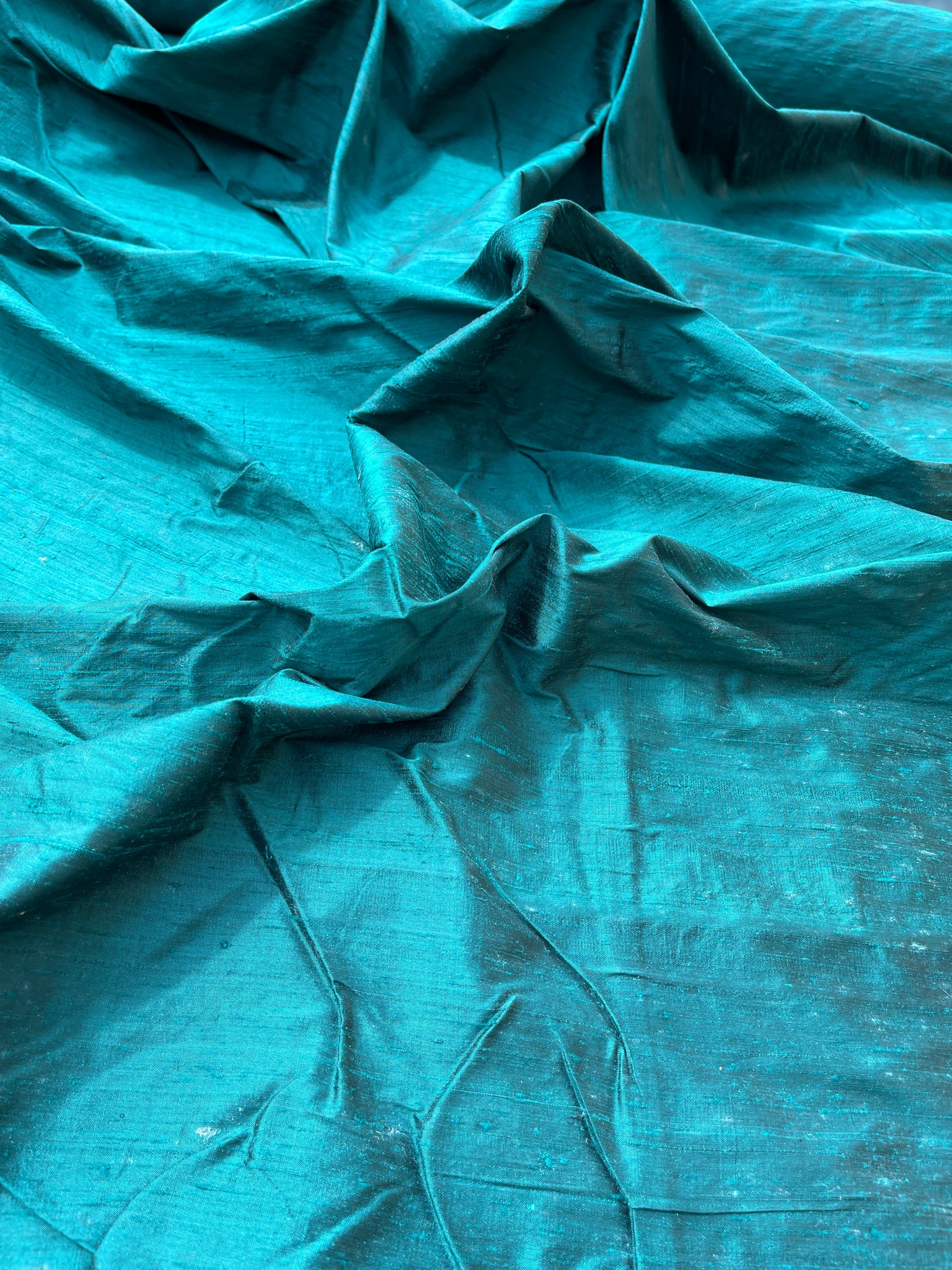Designer Quality Iridescent Silk Dupioni, Hand Woven - TEAL!!!