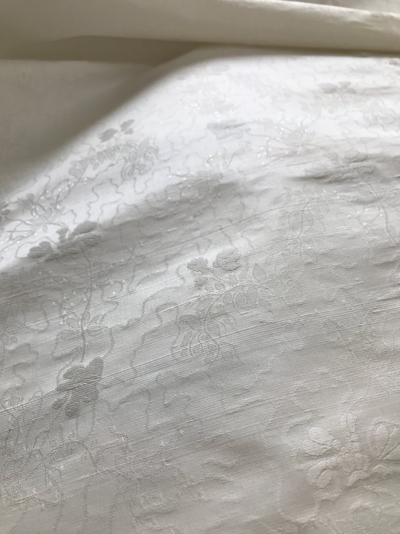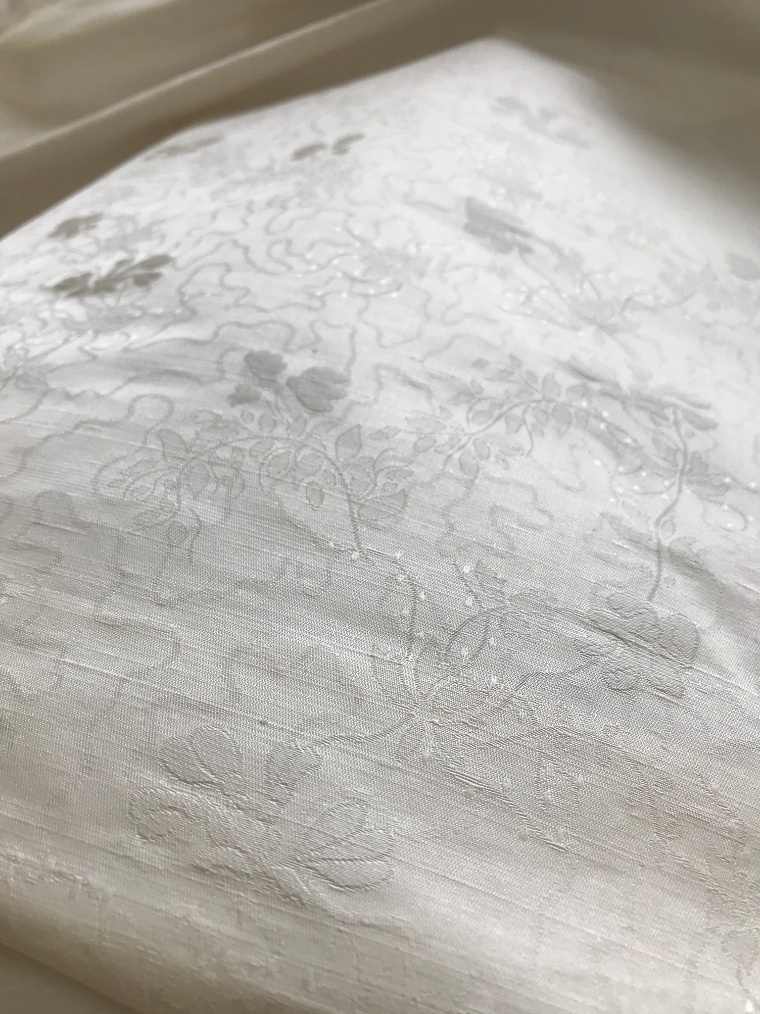 Great quality and medium weight, Silk Shantung floral Jacquard pattern, shade :Off- White.