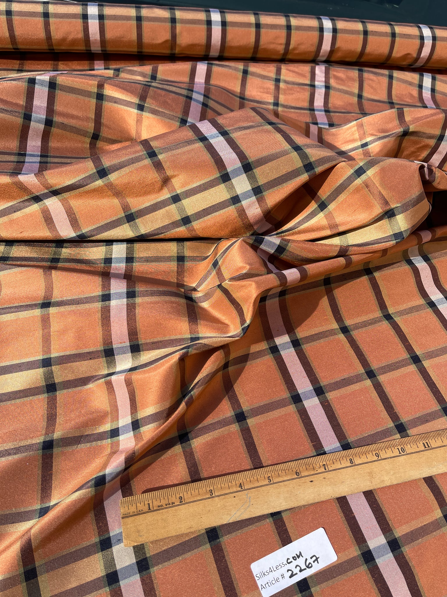 Heavy Silk shantung base in Copper/Brown shade with Navy, Aqua and shades of light Greens.