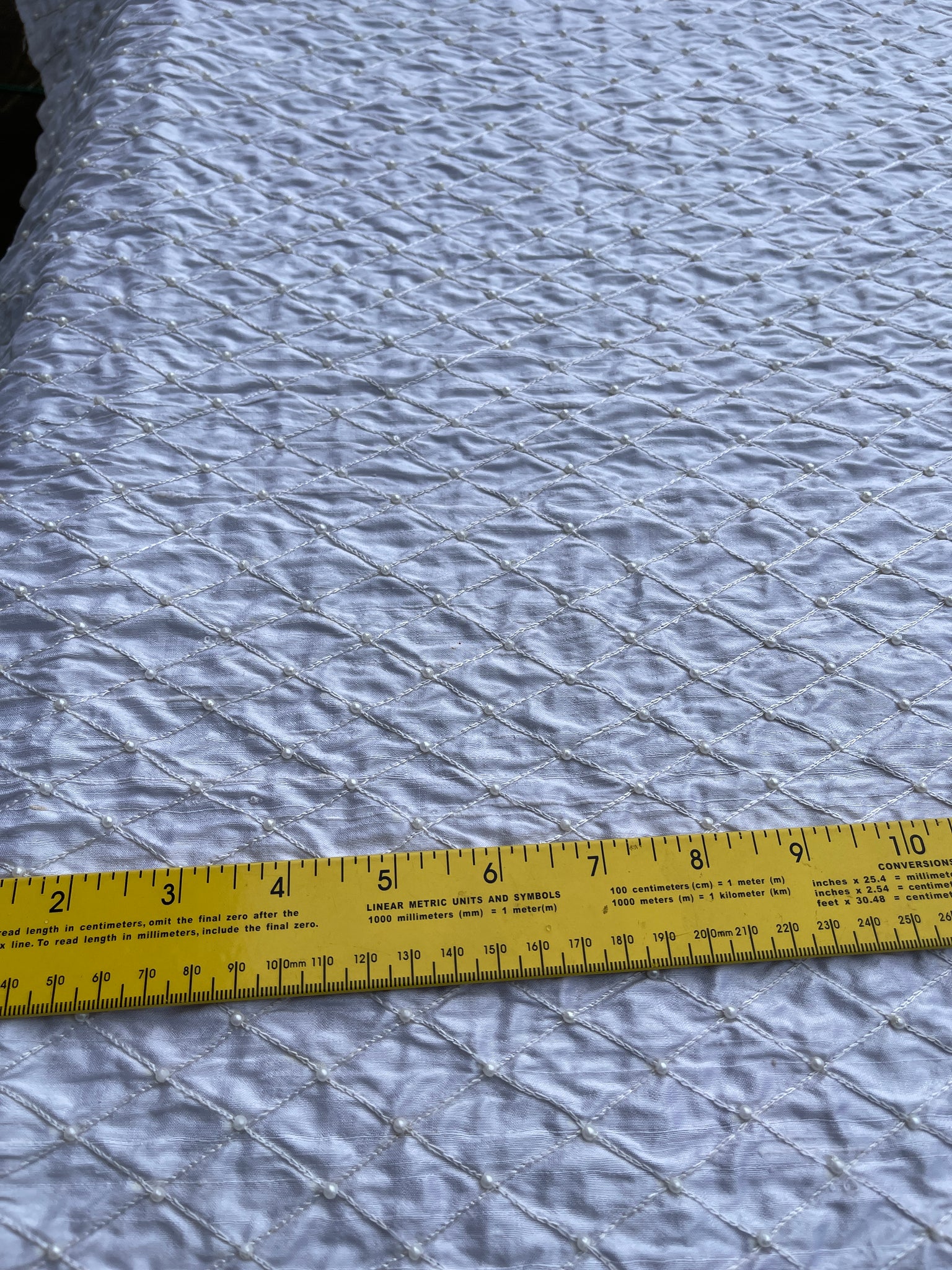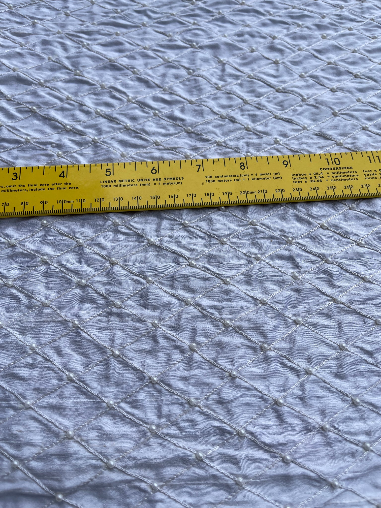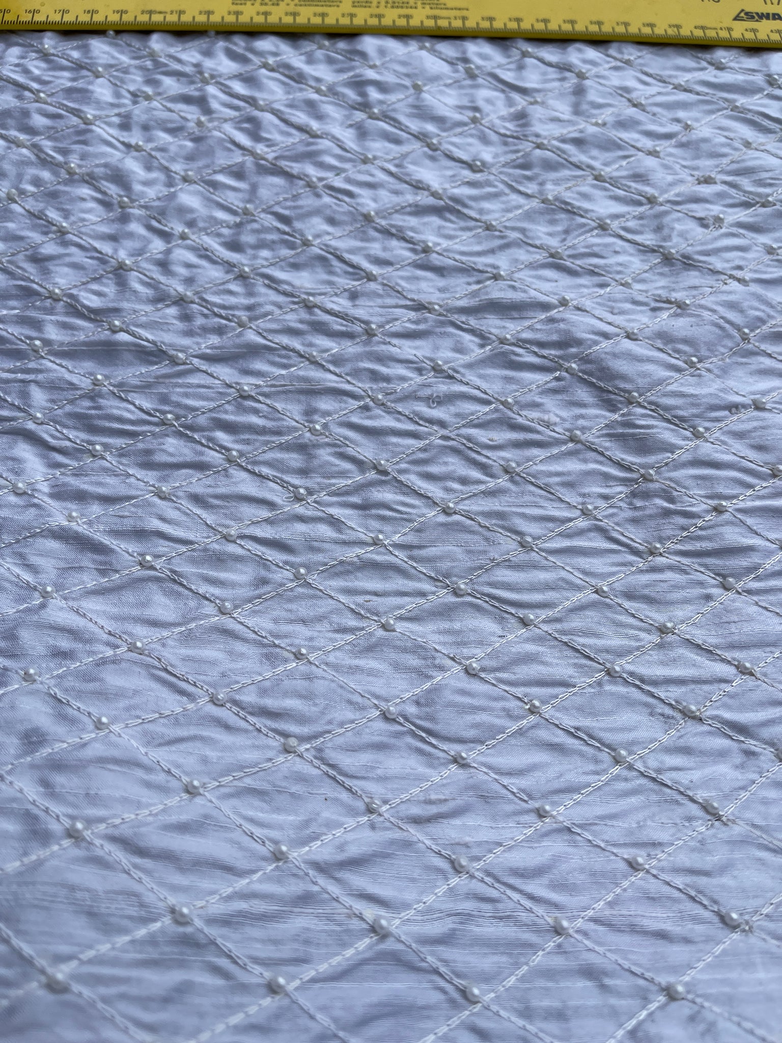 AS PRETTY AS THE PICTURE: Fantastic quality, Snow White shade - shantung Quilt with pearl. Approximate size of the quilt 1.4”, tone on tone White shade pearl hand embroidered on top.