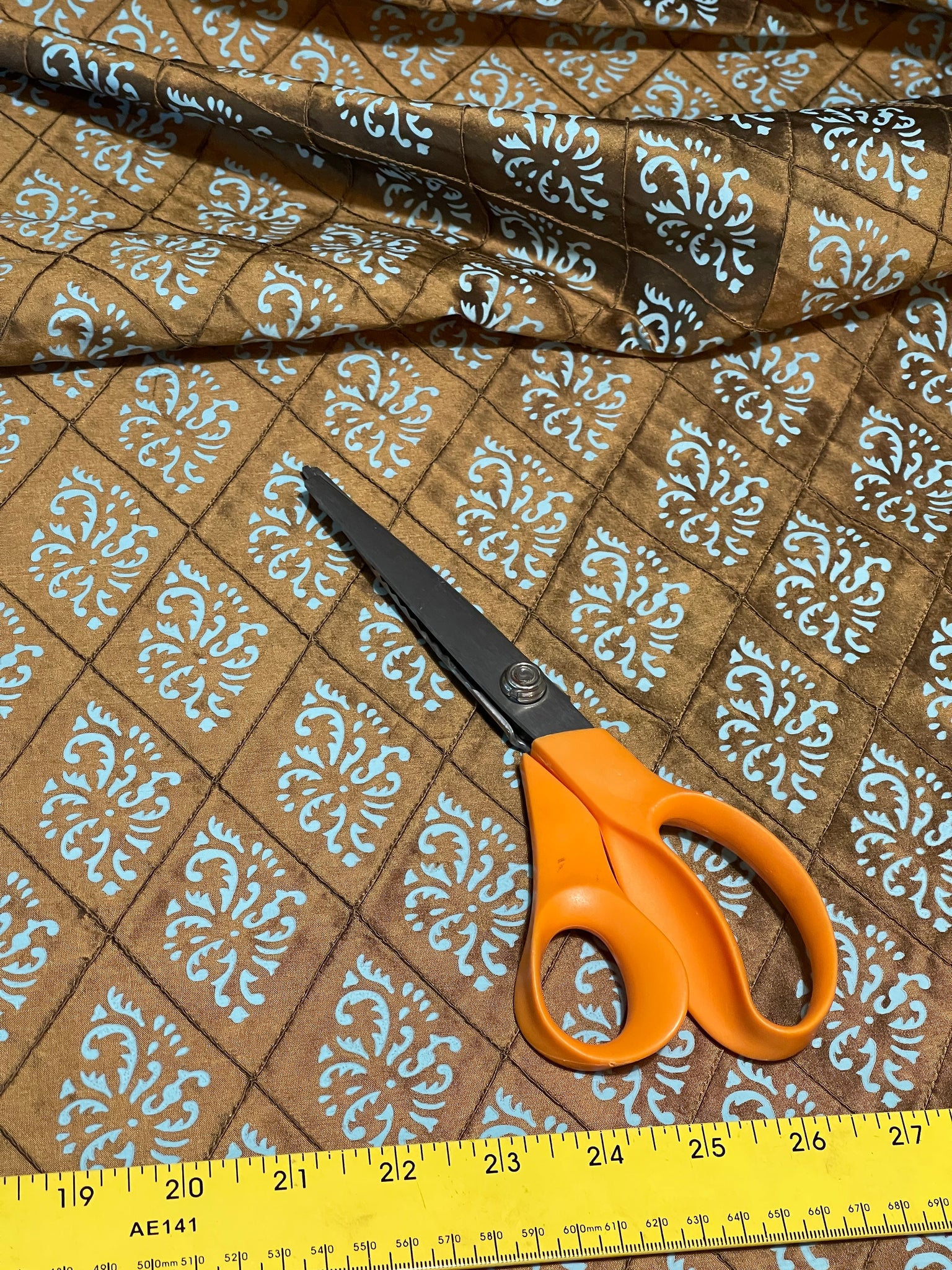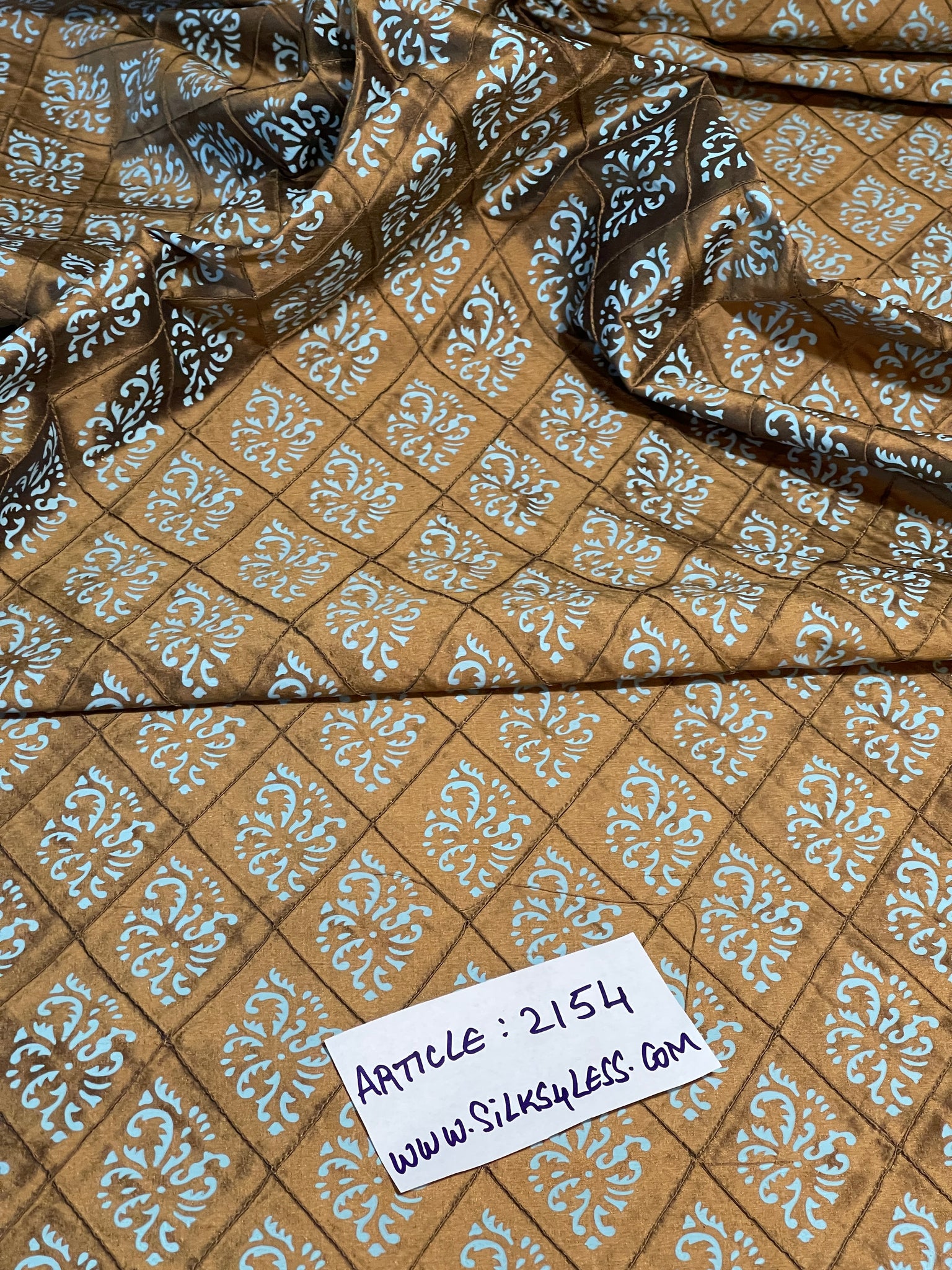 Designer Quality Silk Shantung Quilted And Printed - BURNT GOLD!!