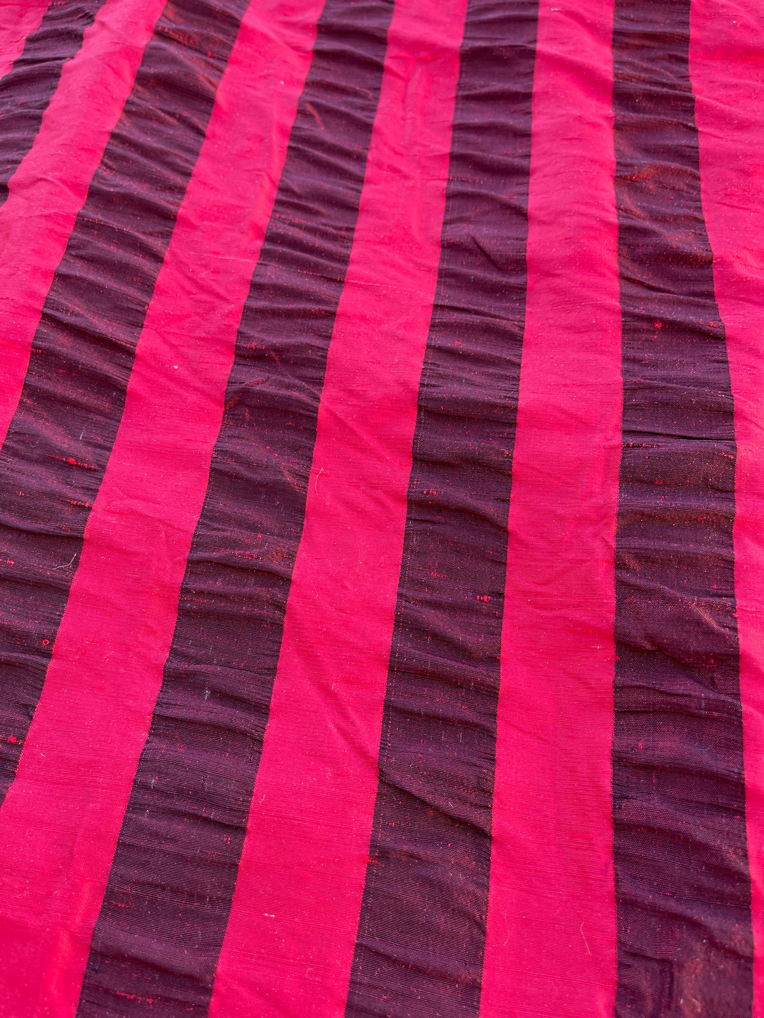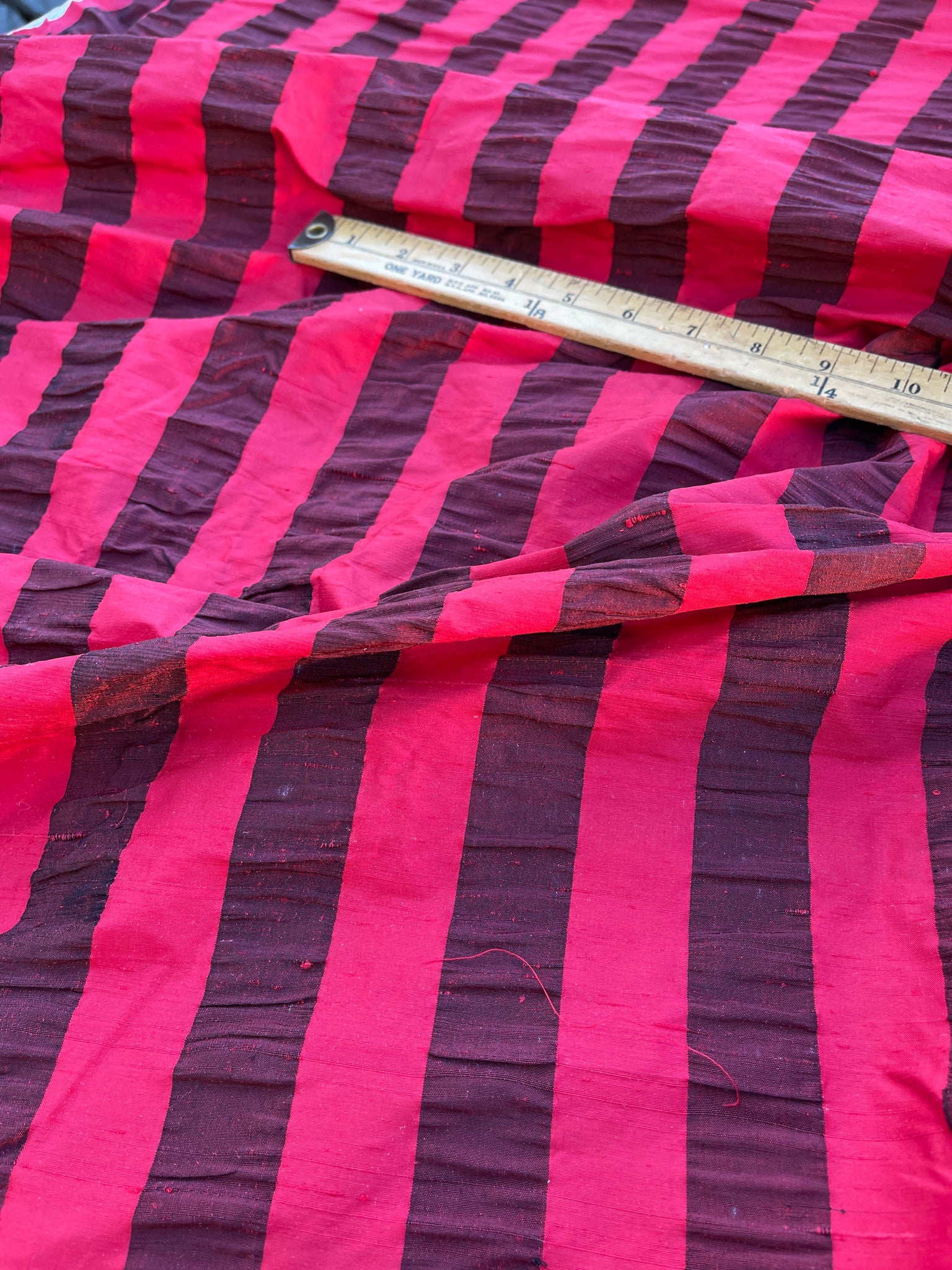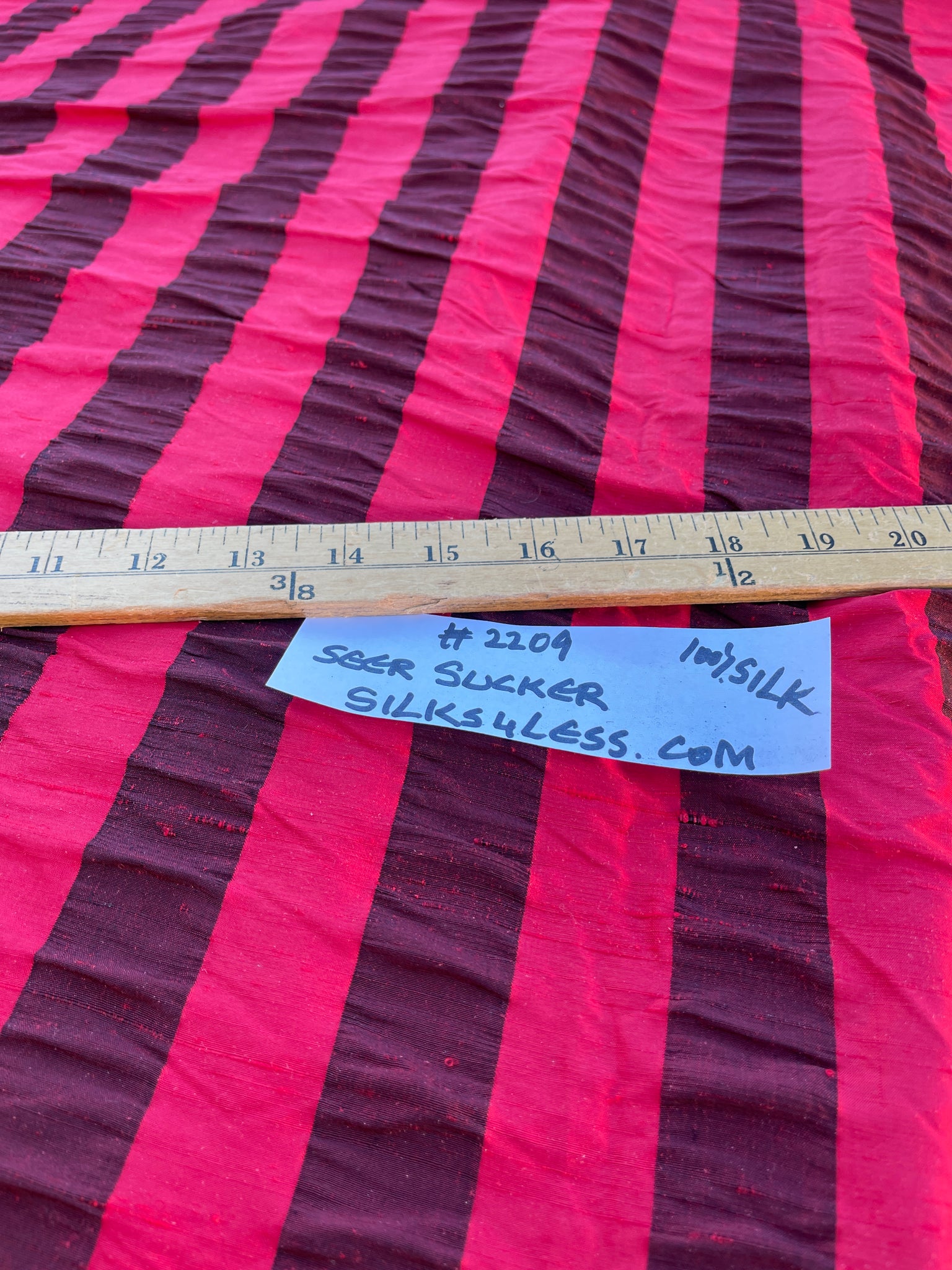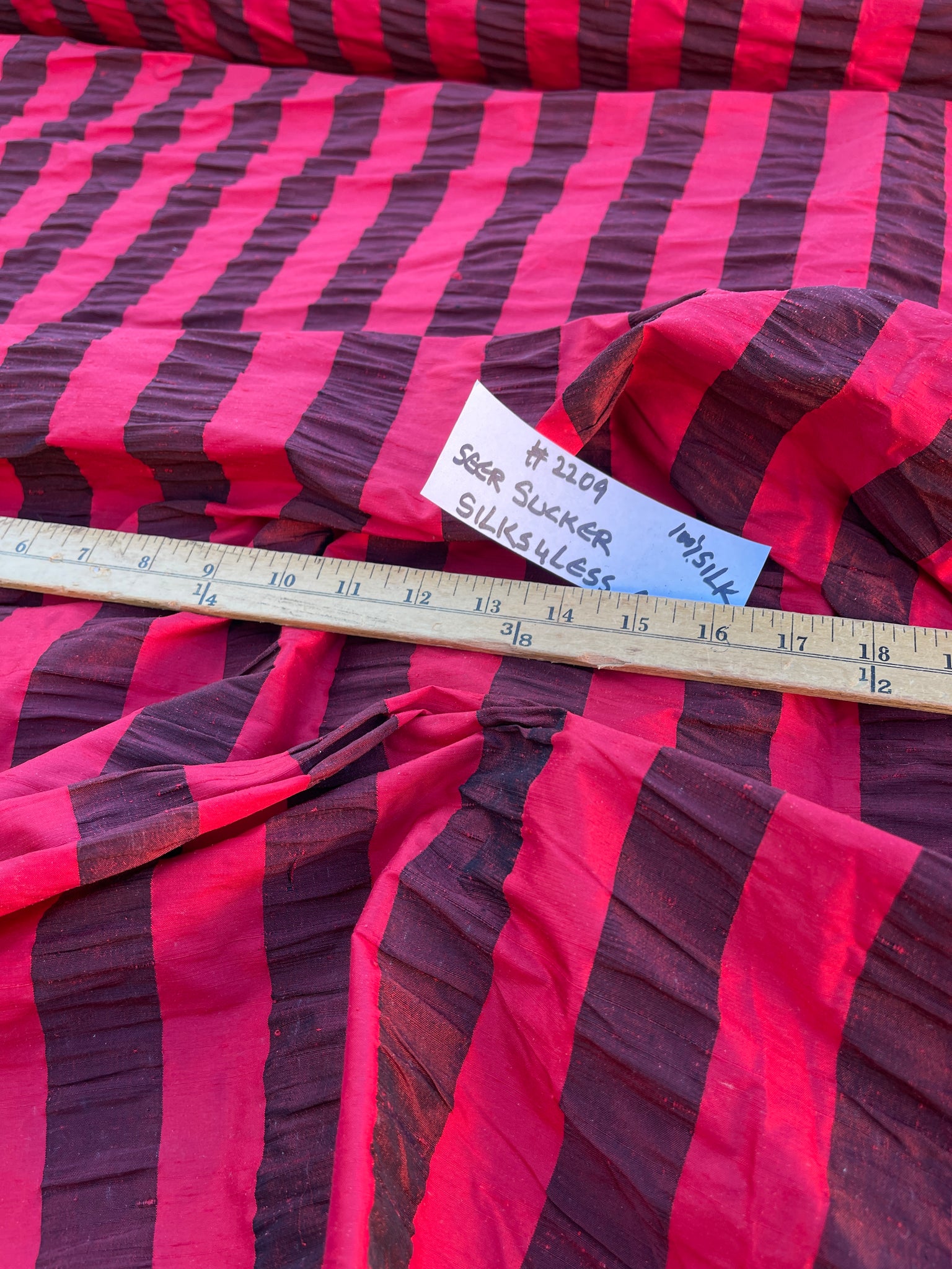 Designer Quality Silk Shantung Seersucker Stripes - RED/ SHERRY!!!