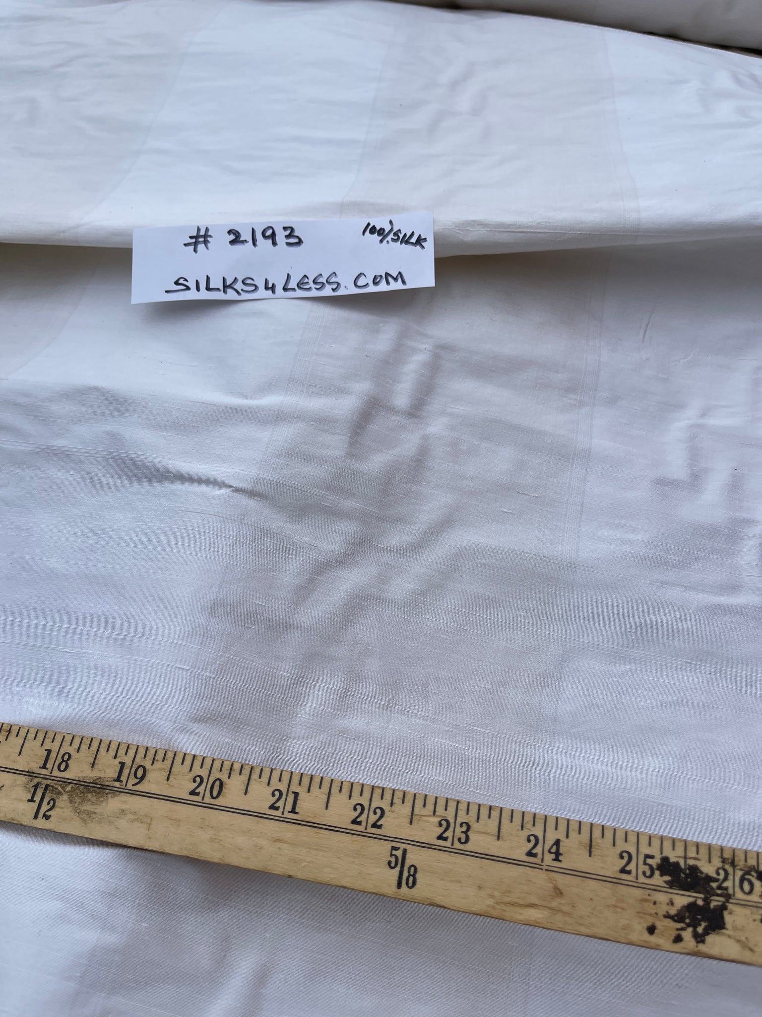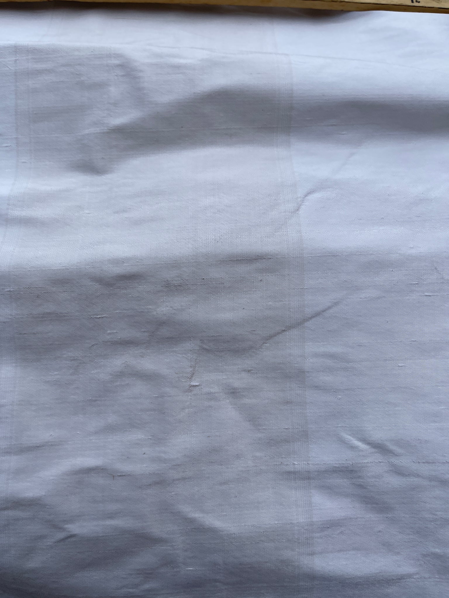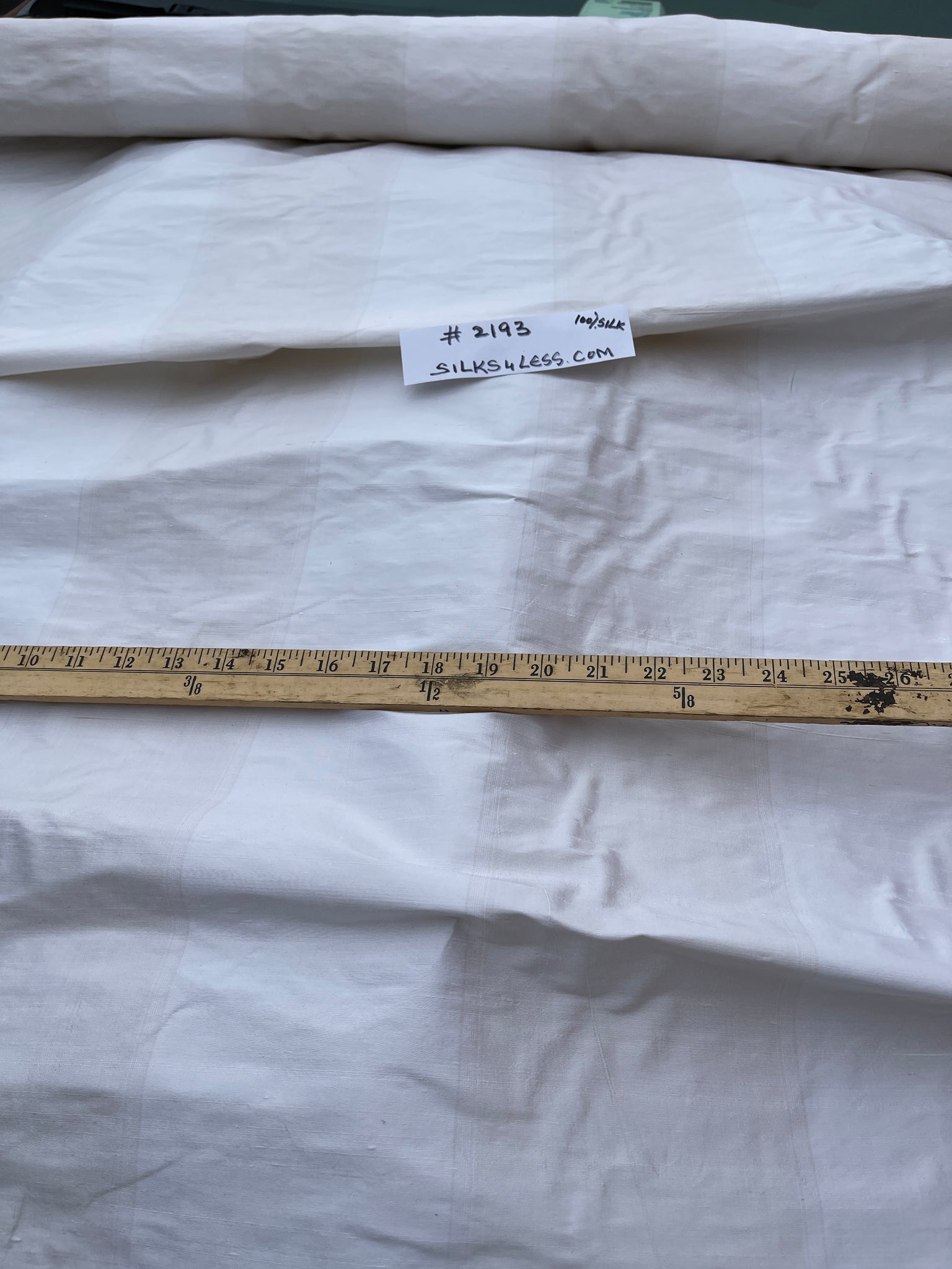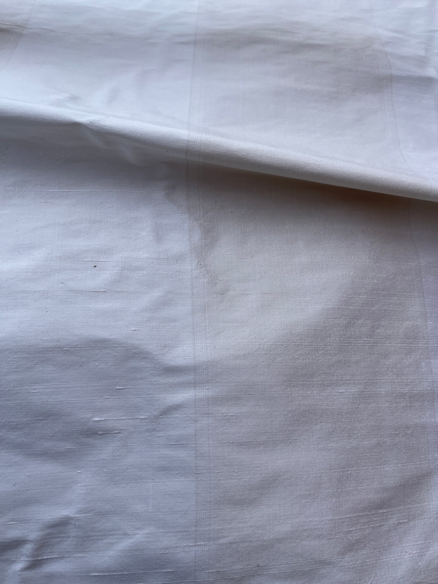 Fabulous quality silk shantung stripes in natural shades- White and very light Peach. Approximate White stripe 4.4” and Peach 5”. Stripes run up the roll.