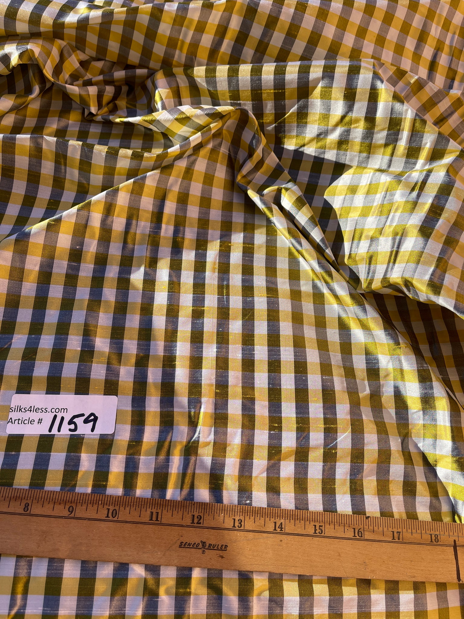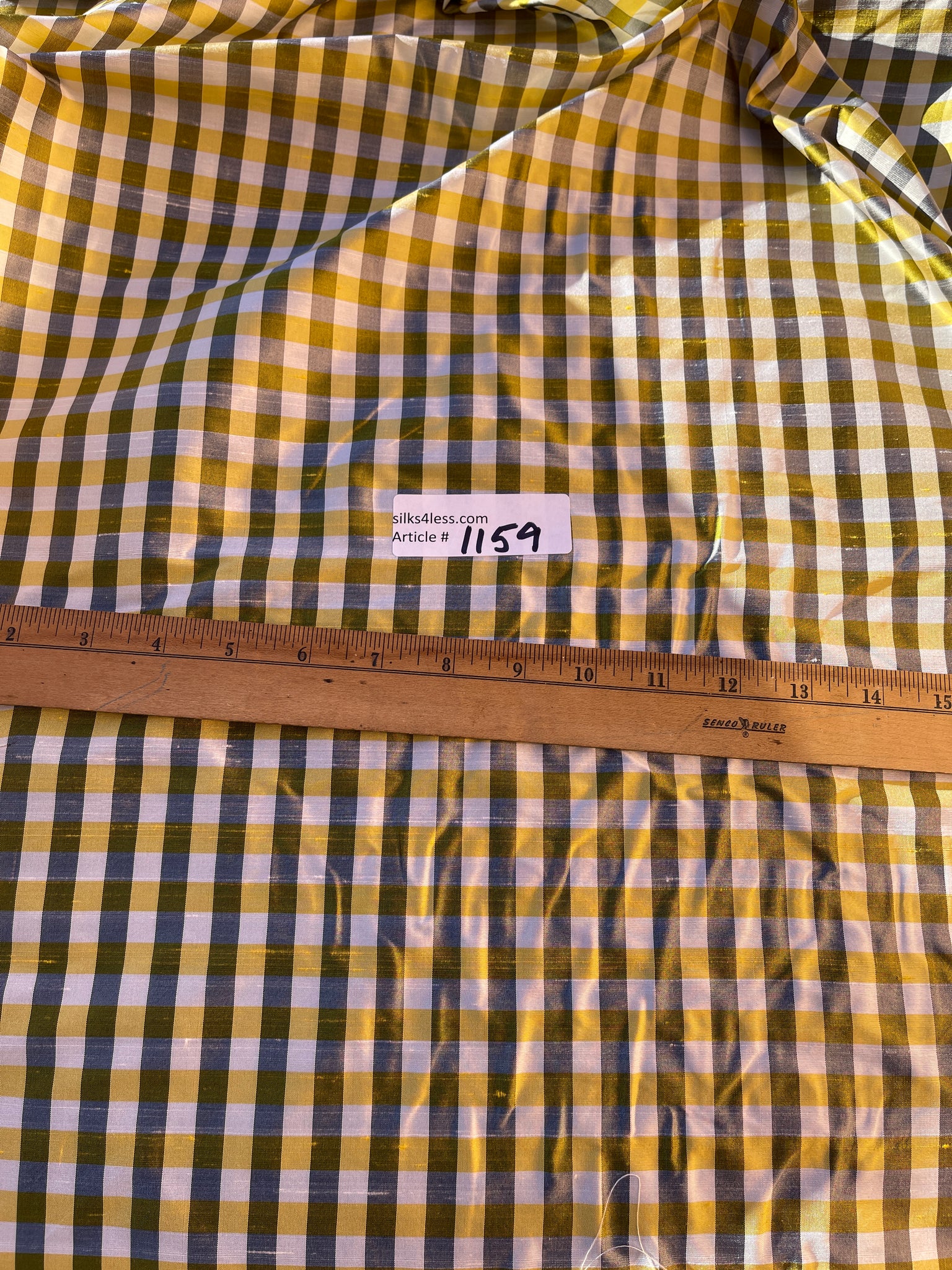 Fabulous Quality Silk Taffeta Gingham check in gorgeous Yellow, Black and Off White, check size ⅜”.