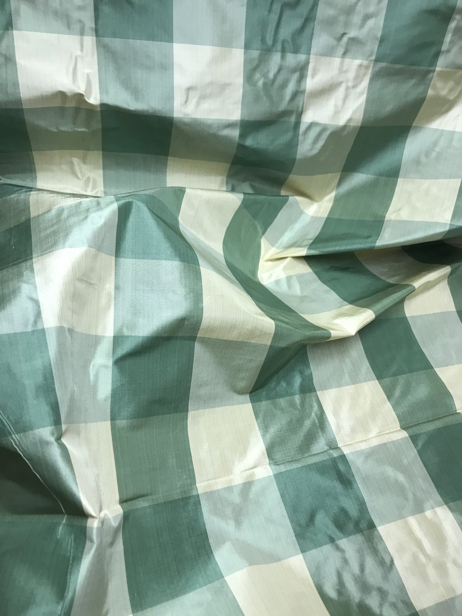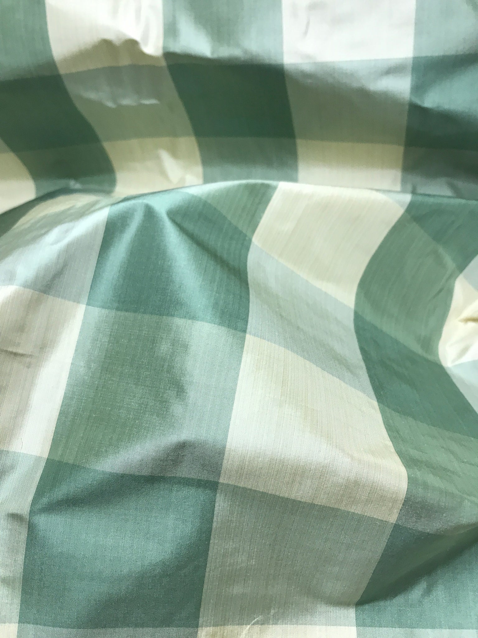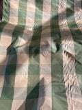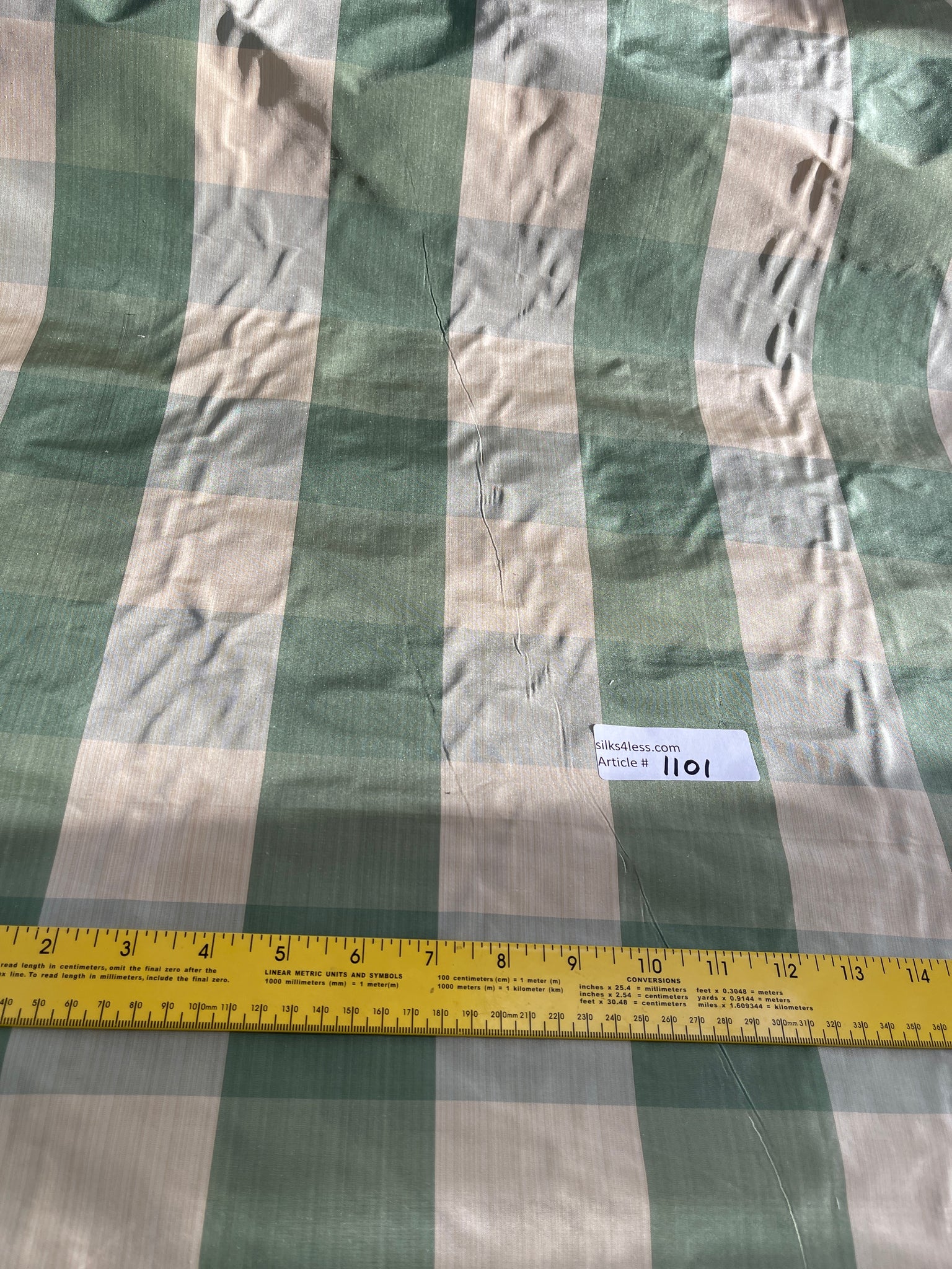 Great body to this silk taffeta plaid, colors Greens and Ivory/Cream tones, approximate check size 2 7/8" x 2 7/8" and repeat 5 1/2".