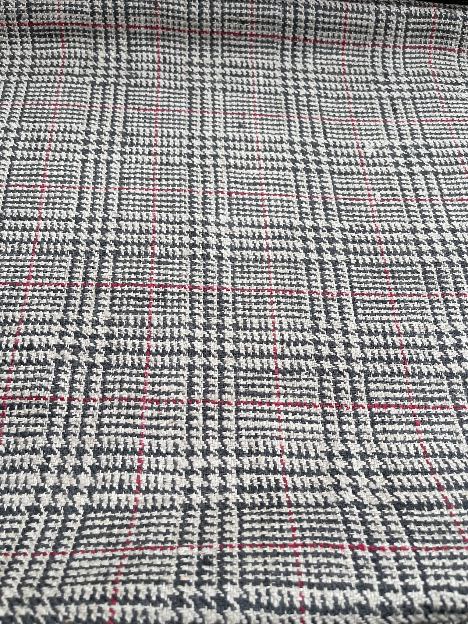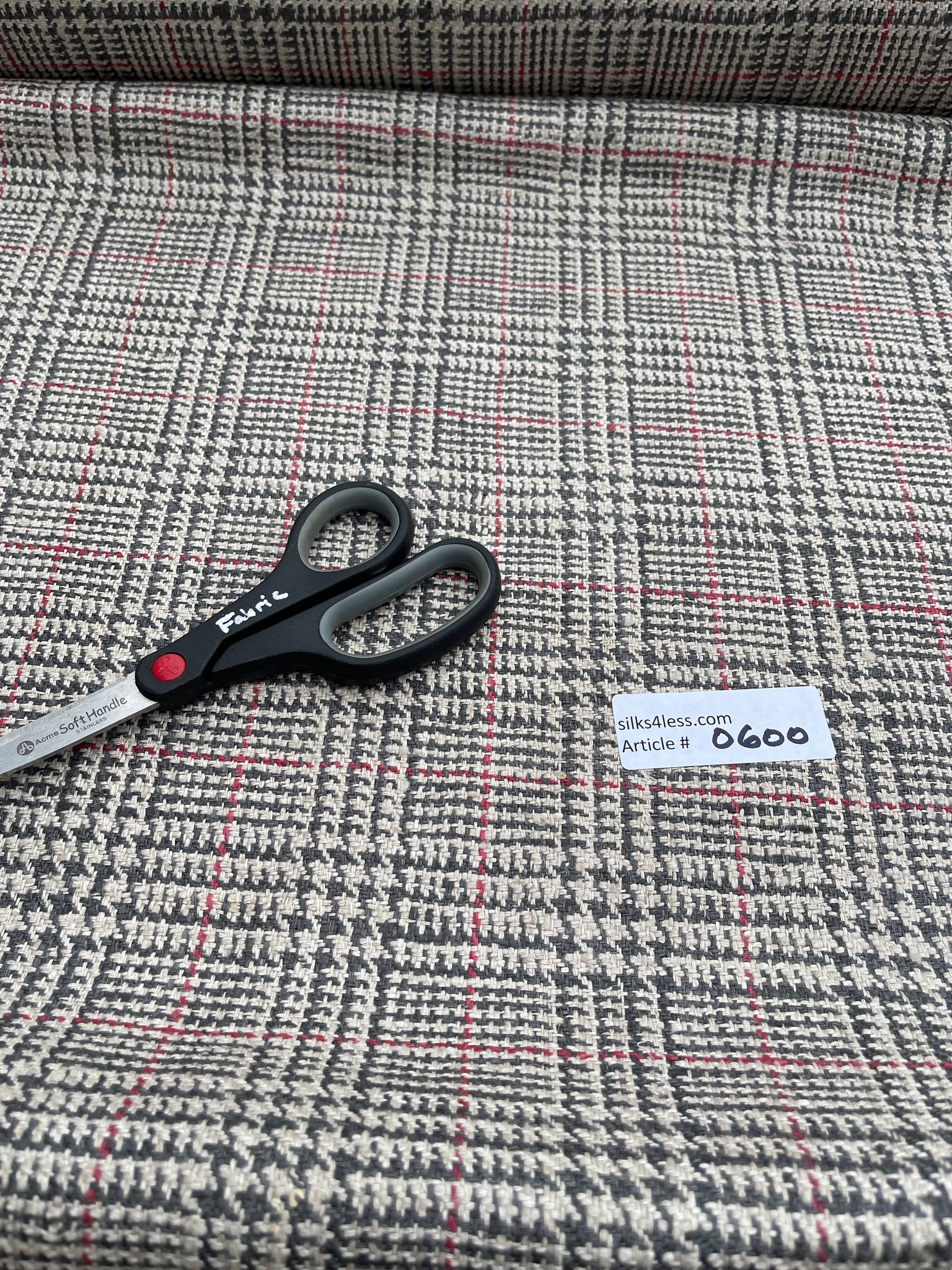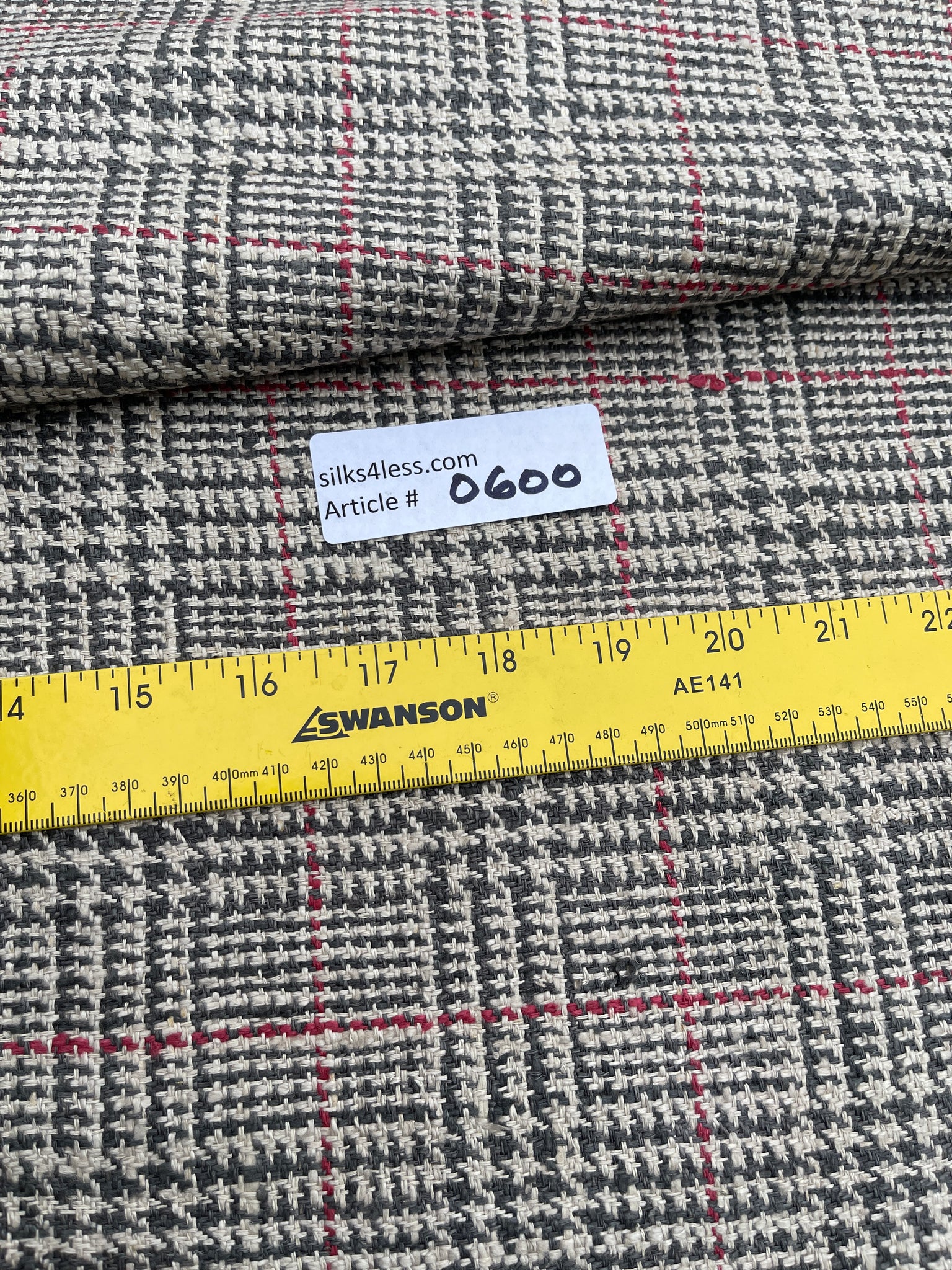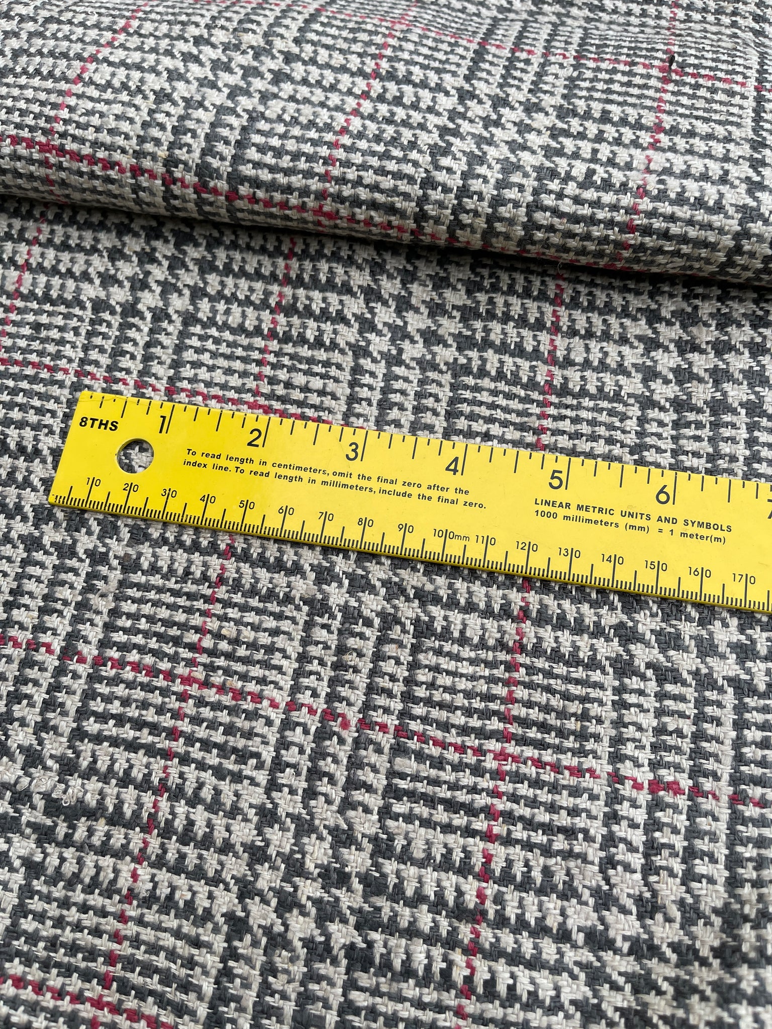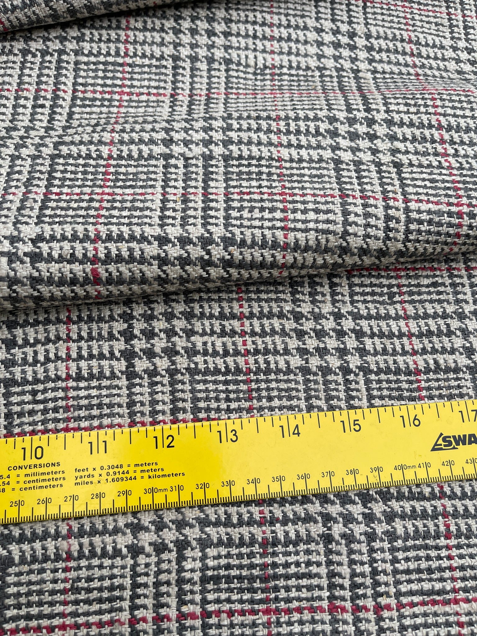 Designer quality Silk matka tweed plaid in Gray / Ivory and Red tones