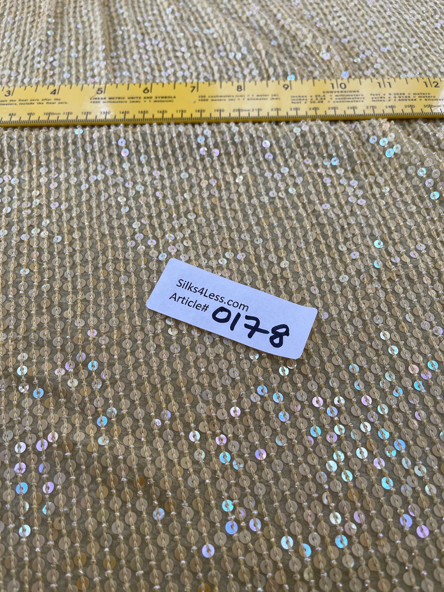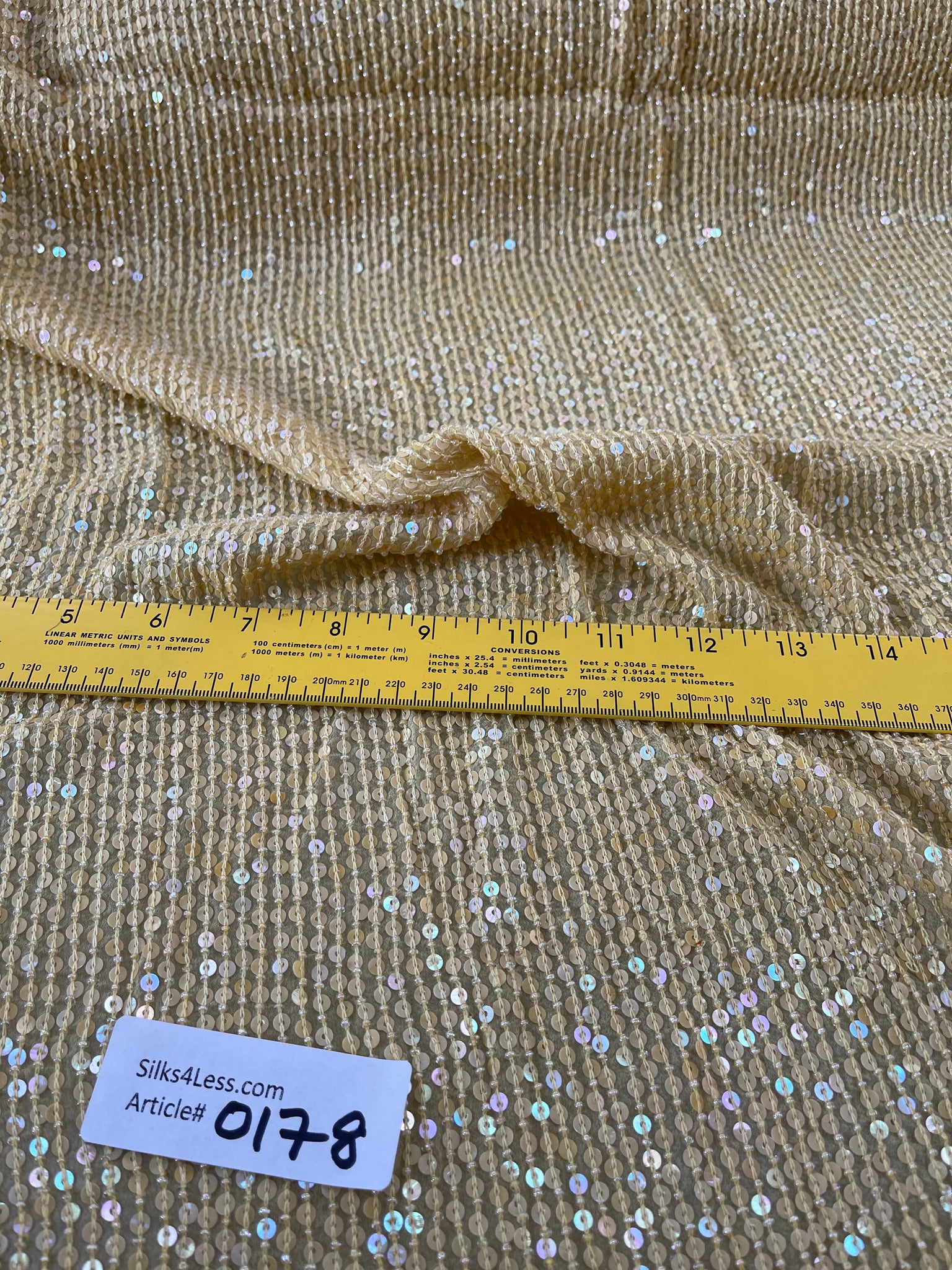Heavy hand embroidered silk chiffon, base Golden Yellow with tone on tone sequence hand embroidered. Heavy piece of silk.
