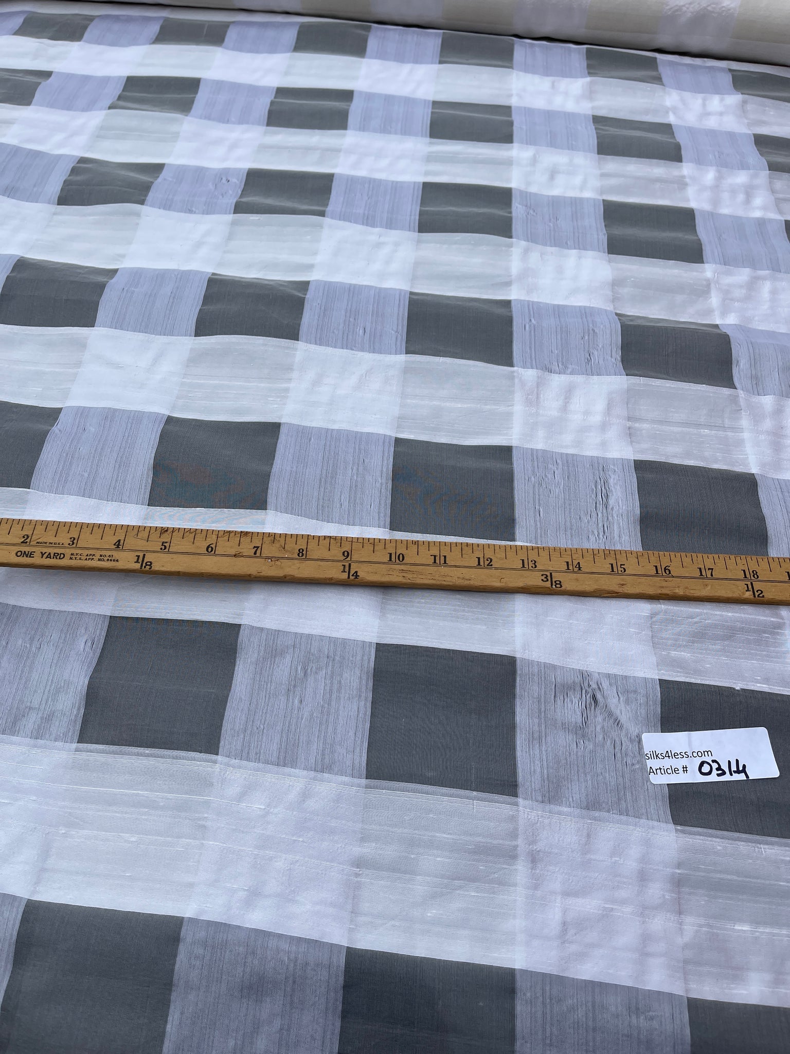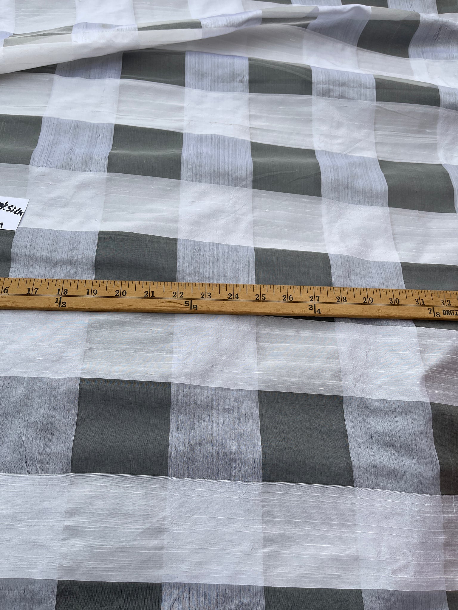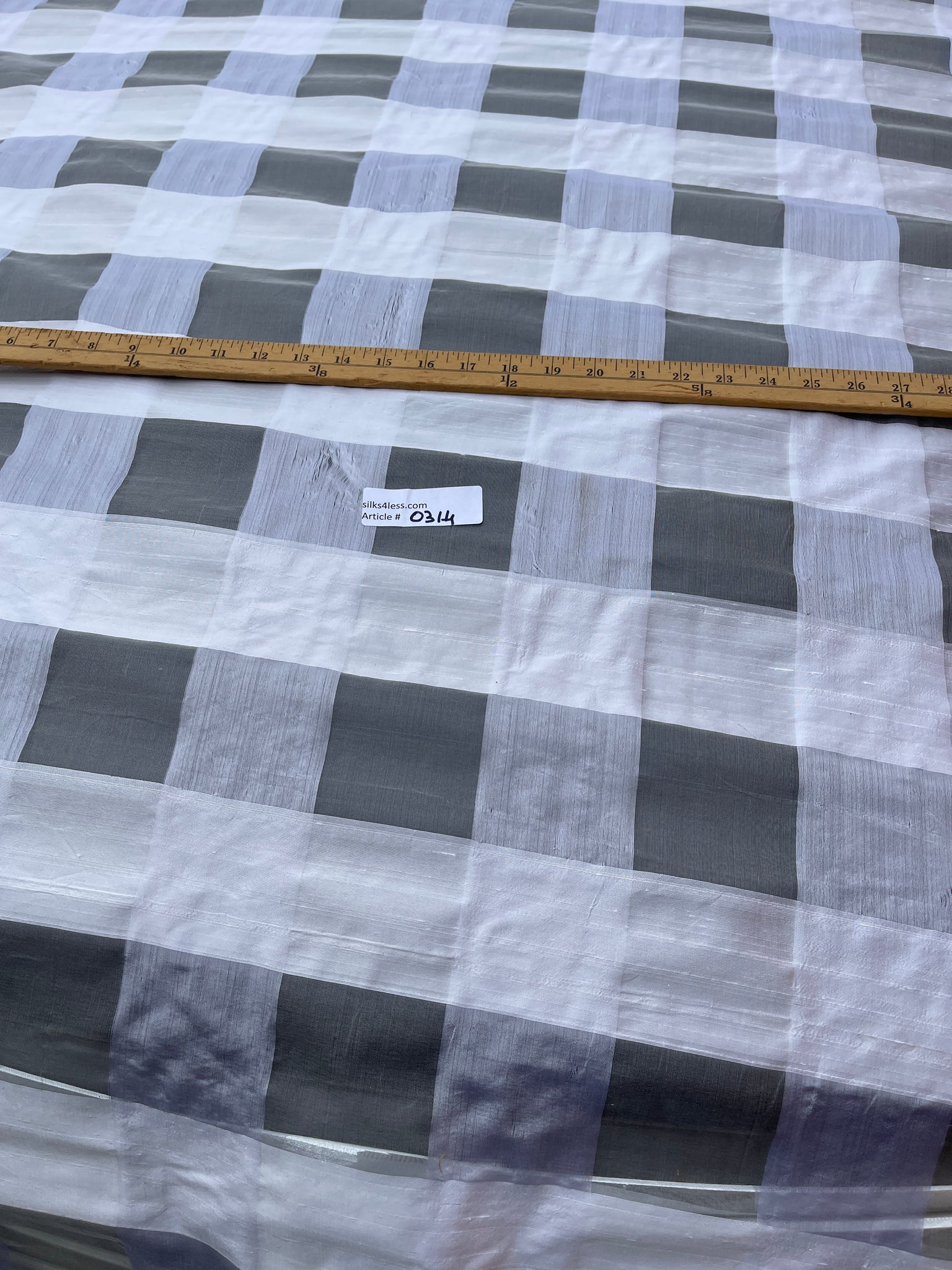 Designer quality unique silk organza / Dupioni sheer plaid in White.