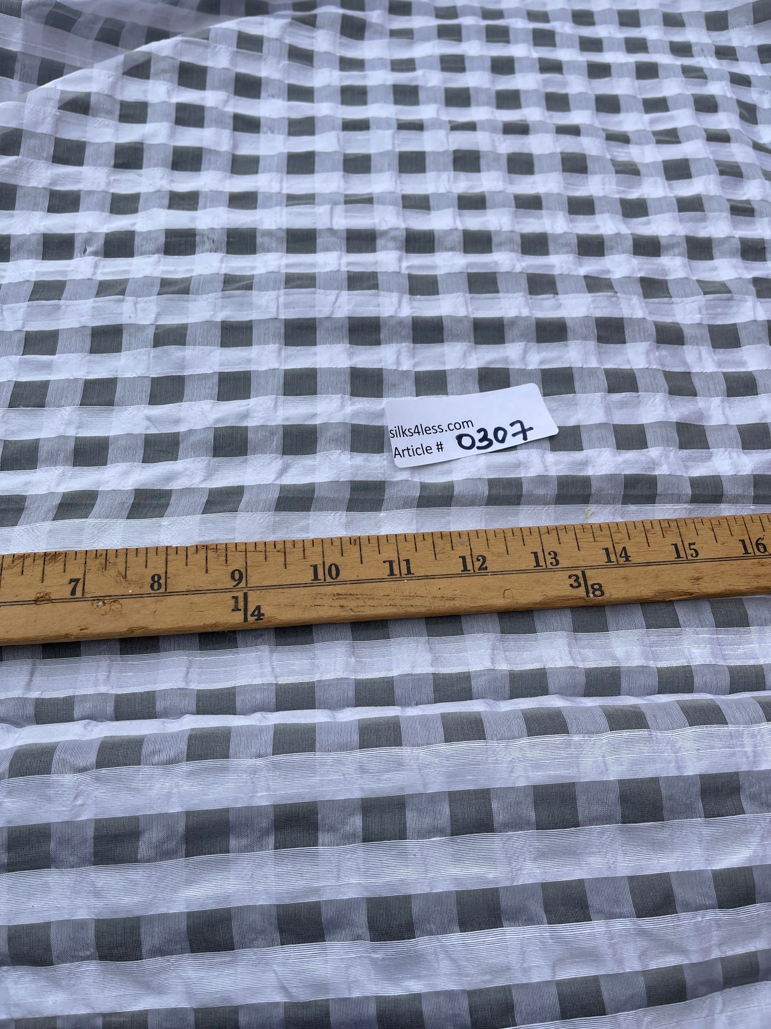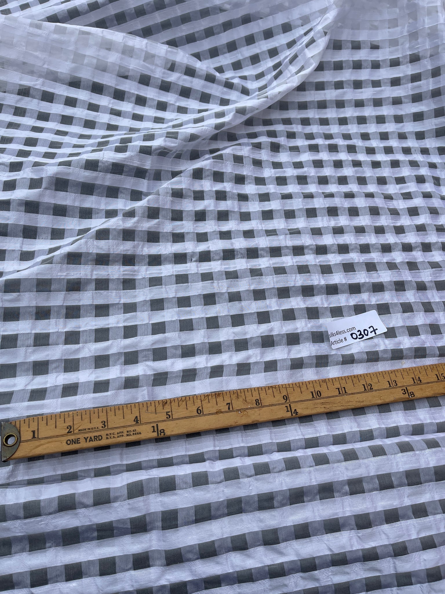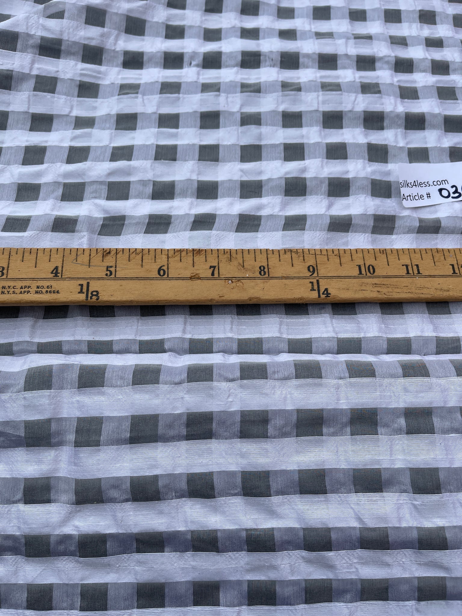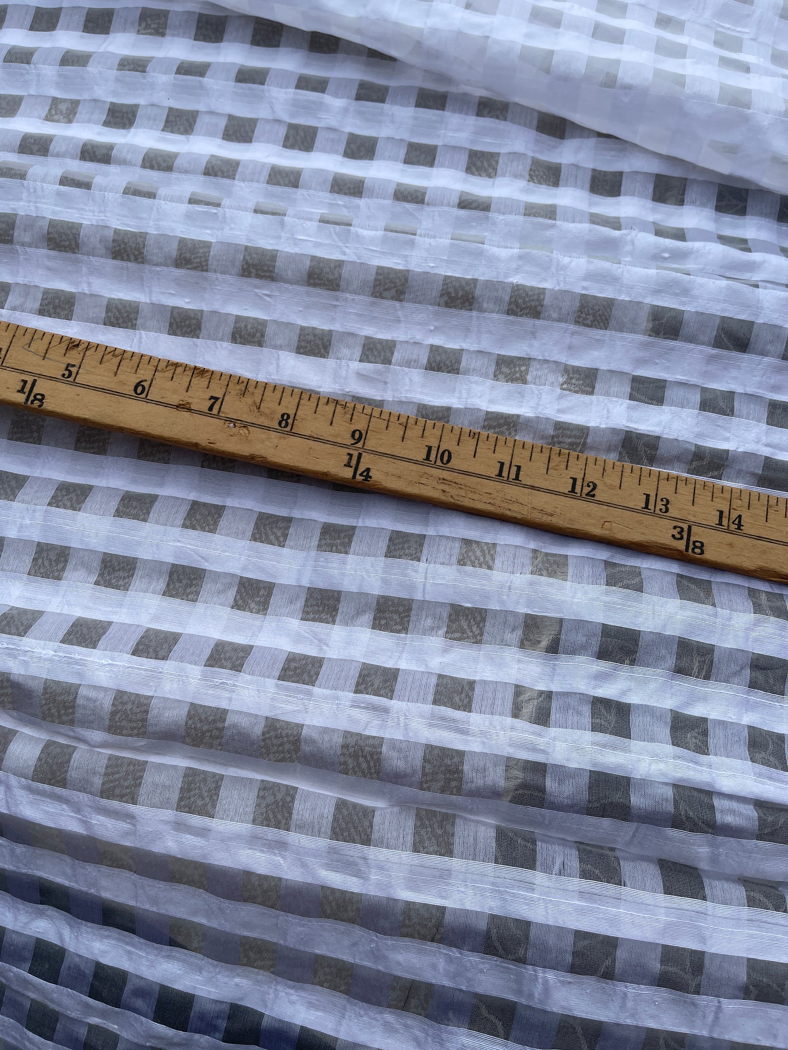 Designer quality unique silk organza sheer plaid, Dupioni silk White yarns in the weft and silk Organza White yarns in the warp, White/White combination, ½” check.