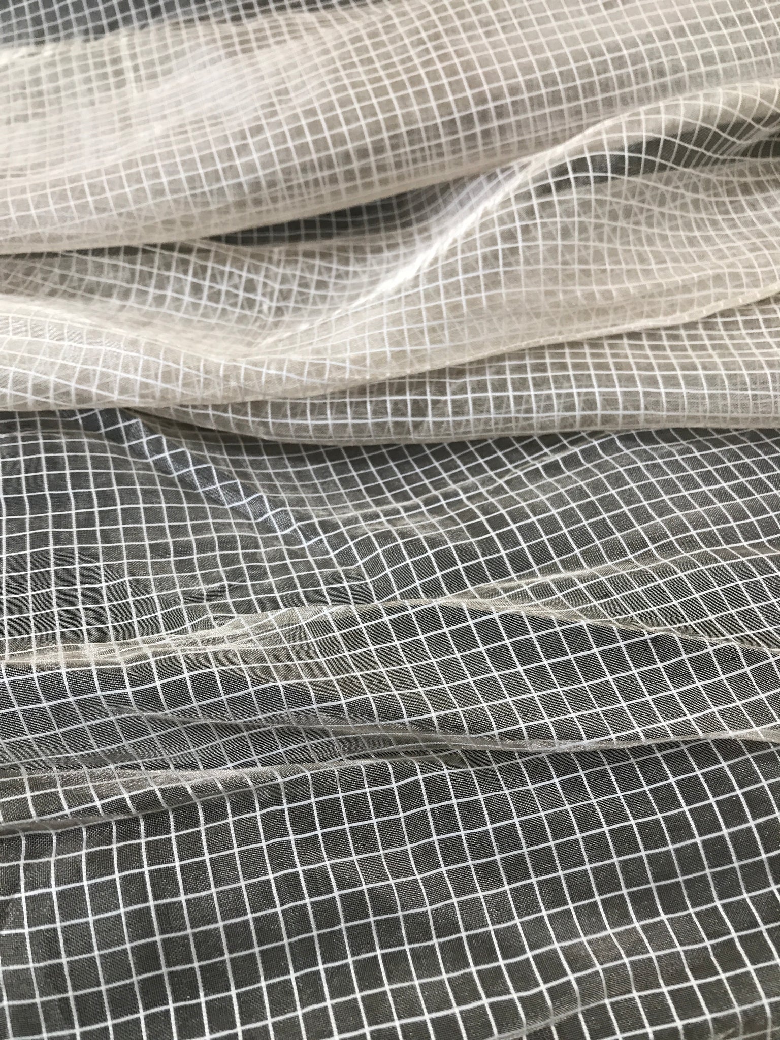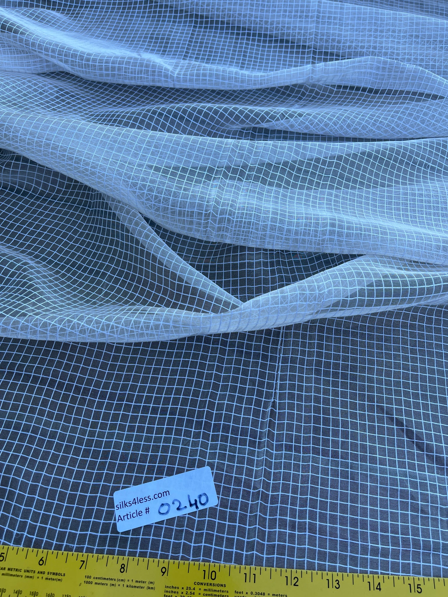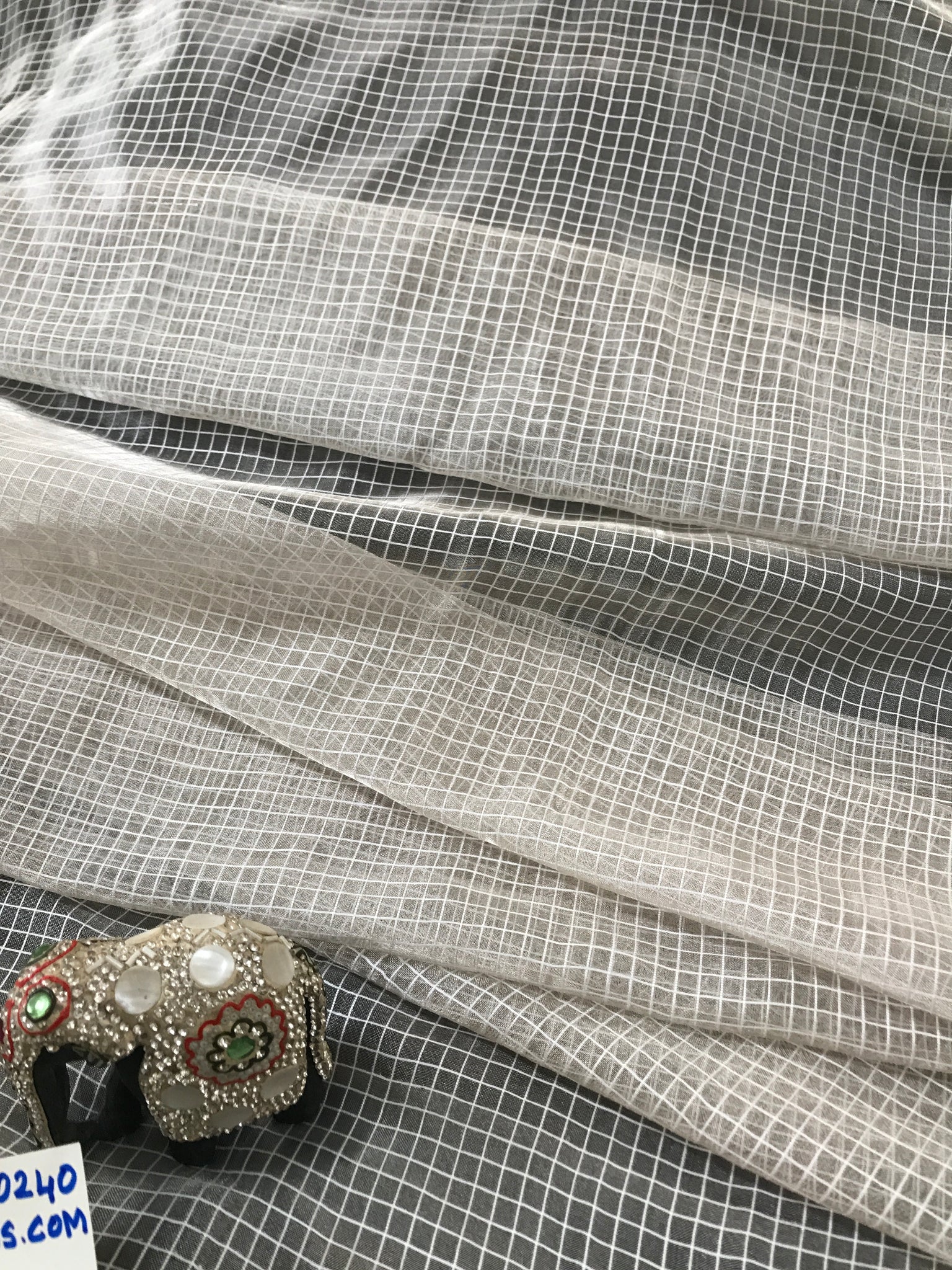Exquisite Quality Silk Tissue Gingham Check Pattern - WHITE/ SILVER!!!