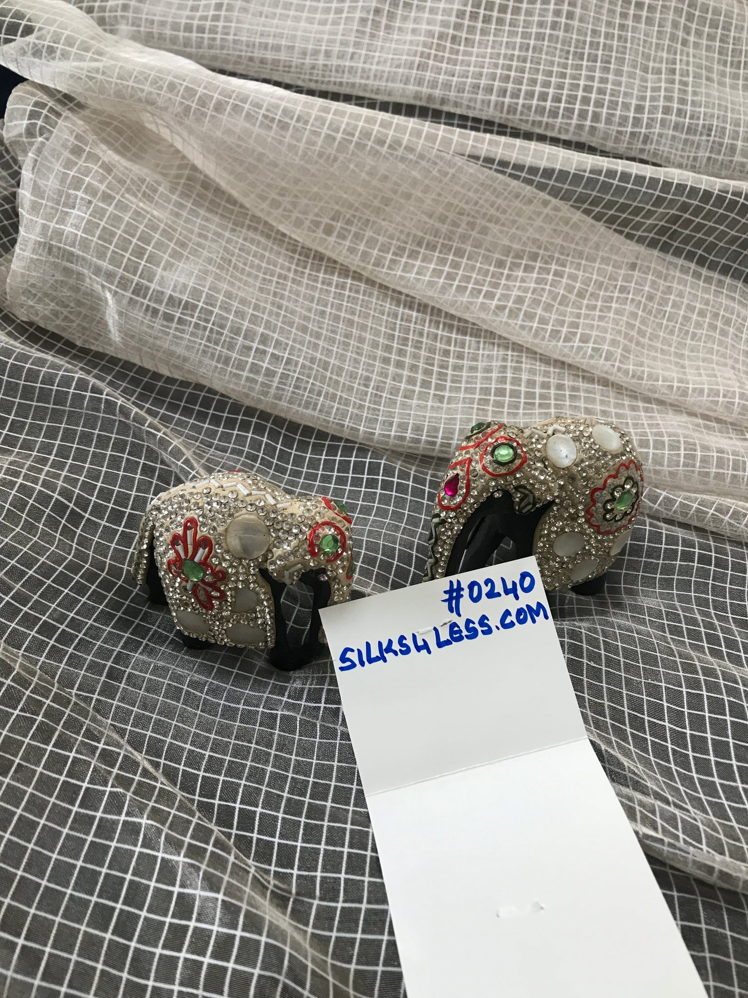 Silk tissue fabrics are known for their luster, fine finish and transparent look. Gorgeous White/Silver combination small gingham check, unique pattern.